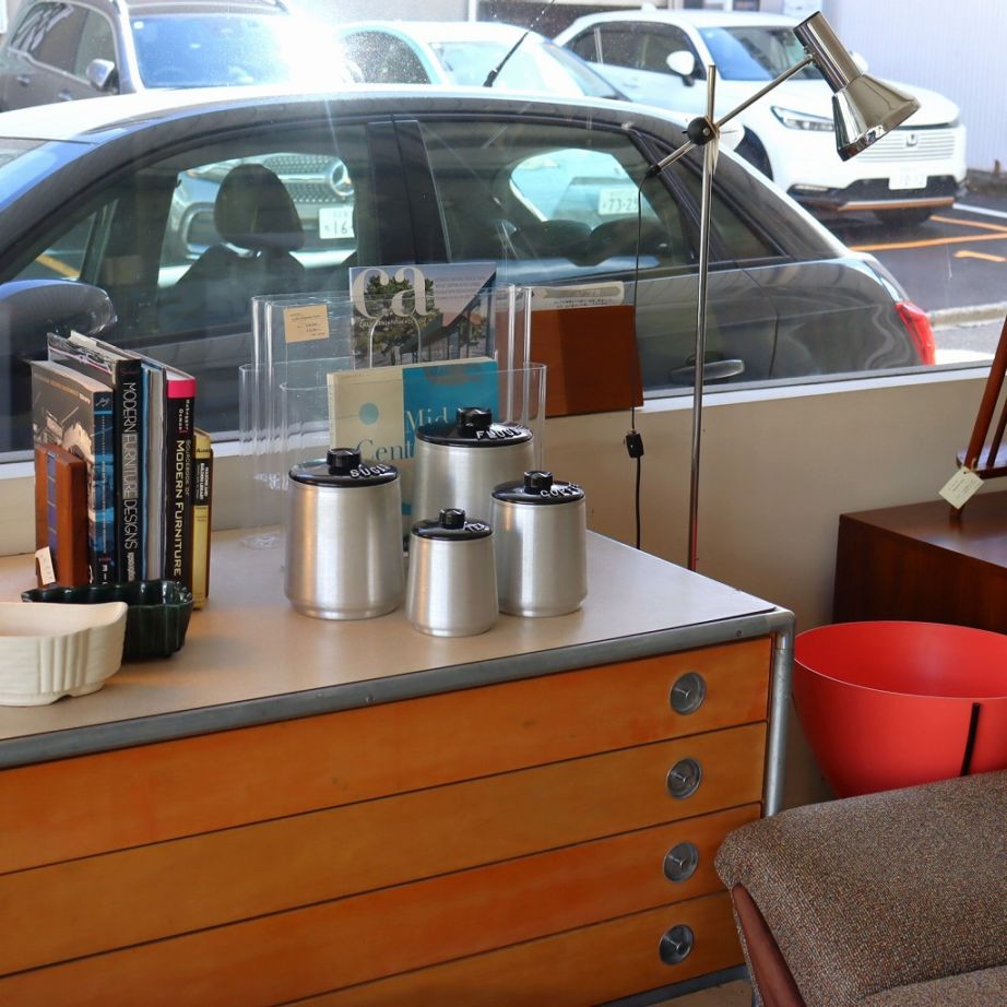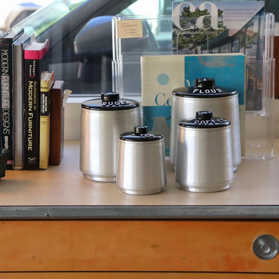 クロメックス社製キッチンキャニスターセット。KROMEX社のキャニスターは50~60年代のアメリカのキッチンシーンで人気を博したミッドセンチュリーを代表するキッチンアイテムです。