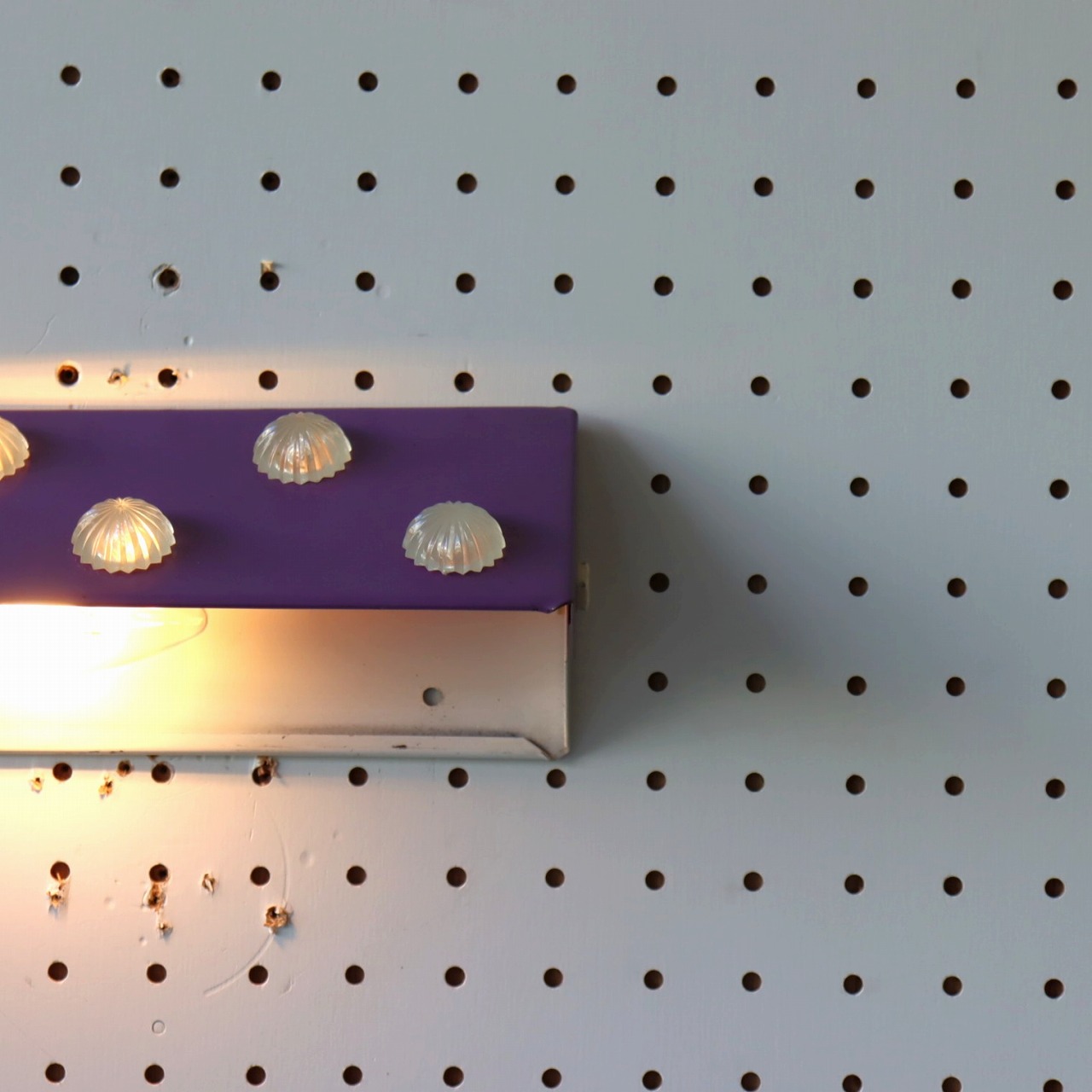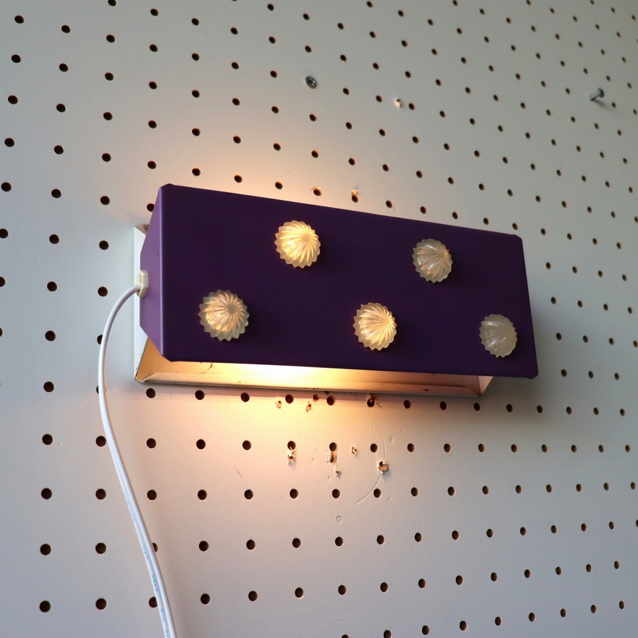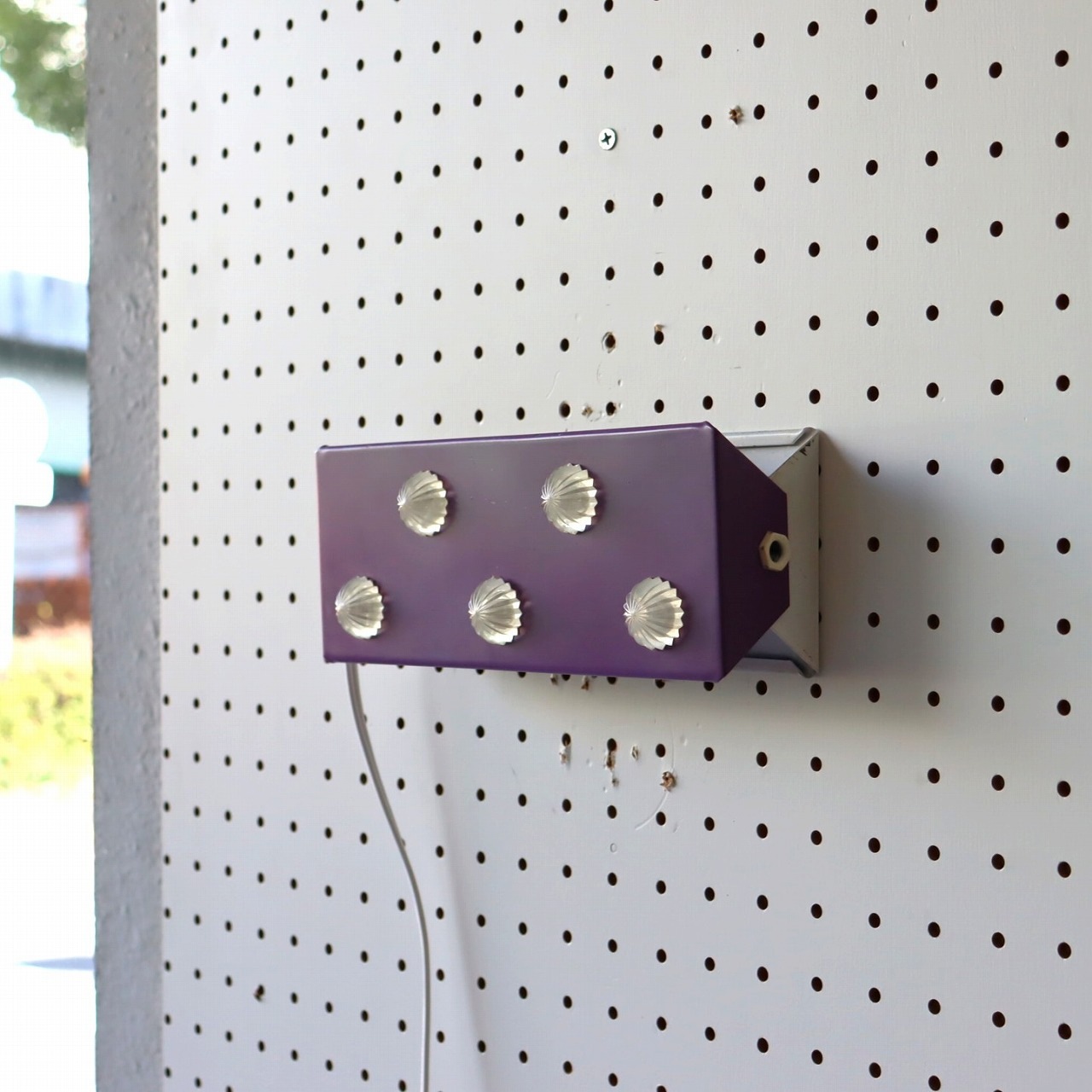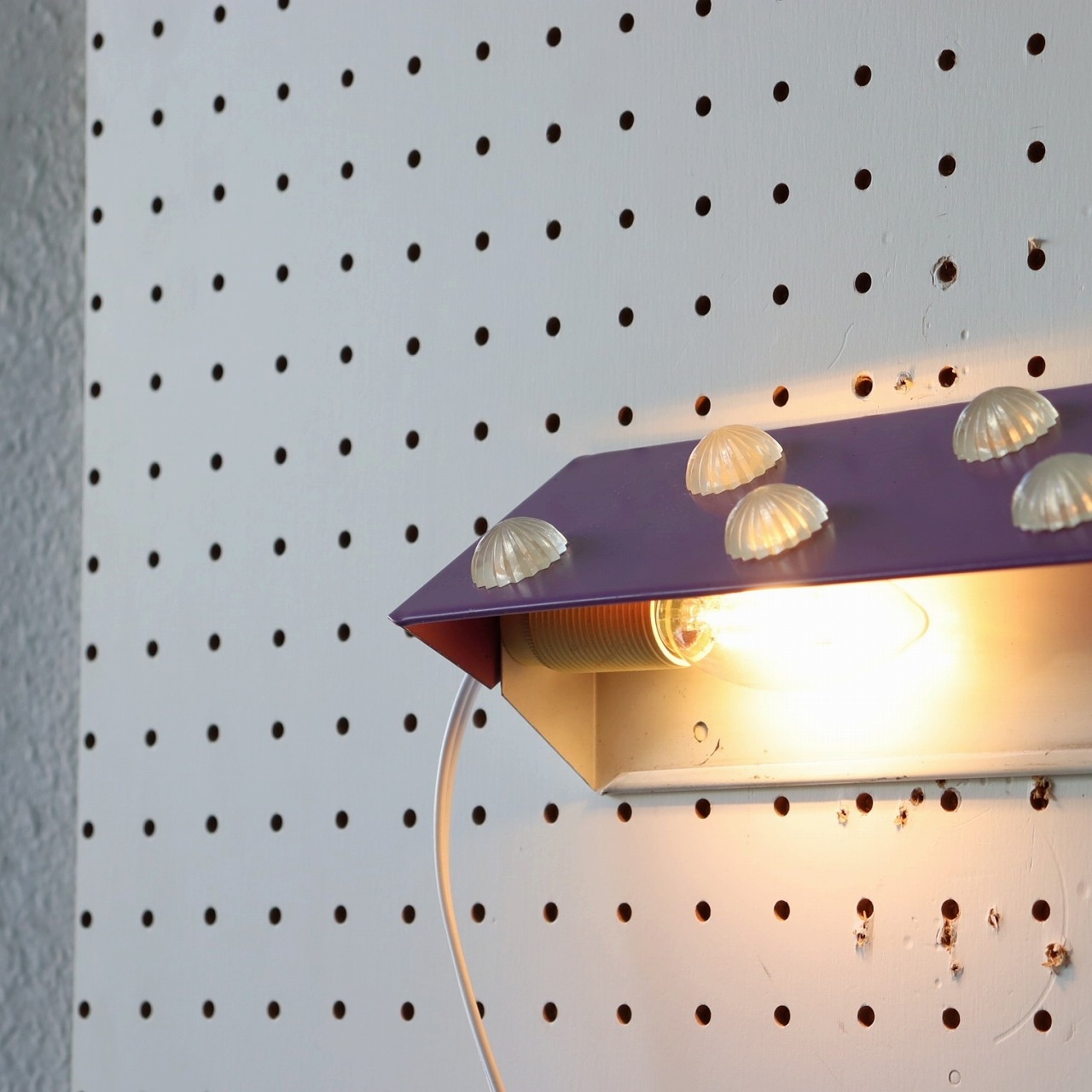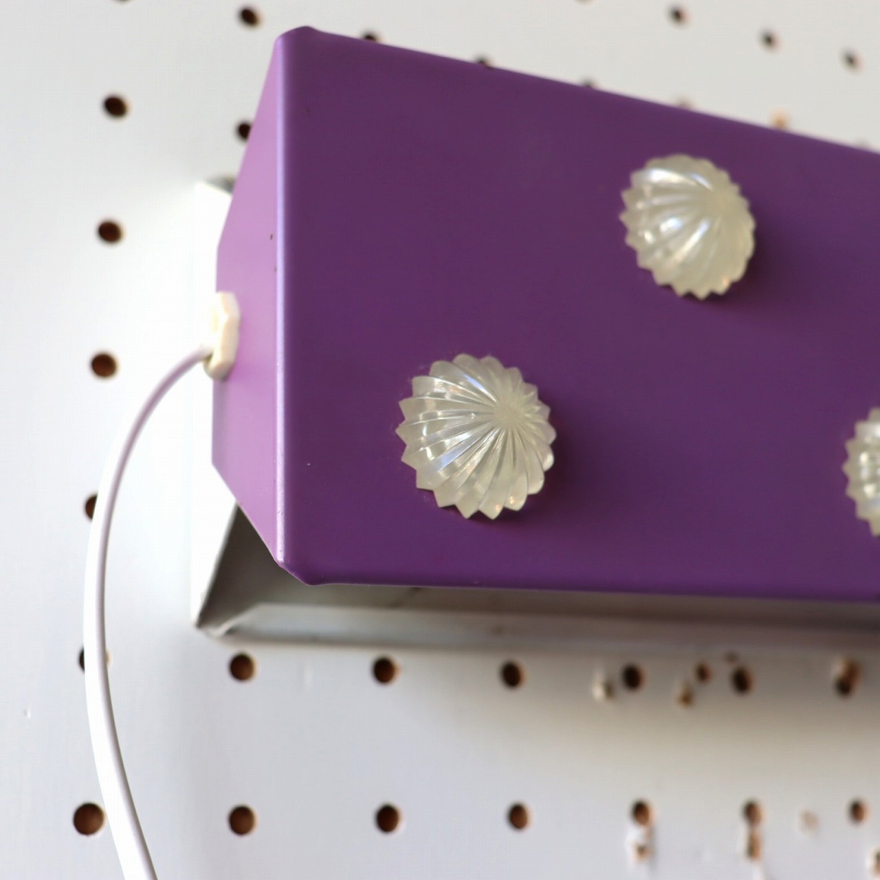 パープルのシェードにコンペイトウのような5つのアクリル飾りが取りついたデザイン。ポップで可愛らしい雰囲気とスチールの質感のバランスが良いですね。
