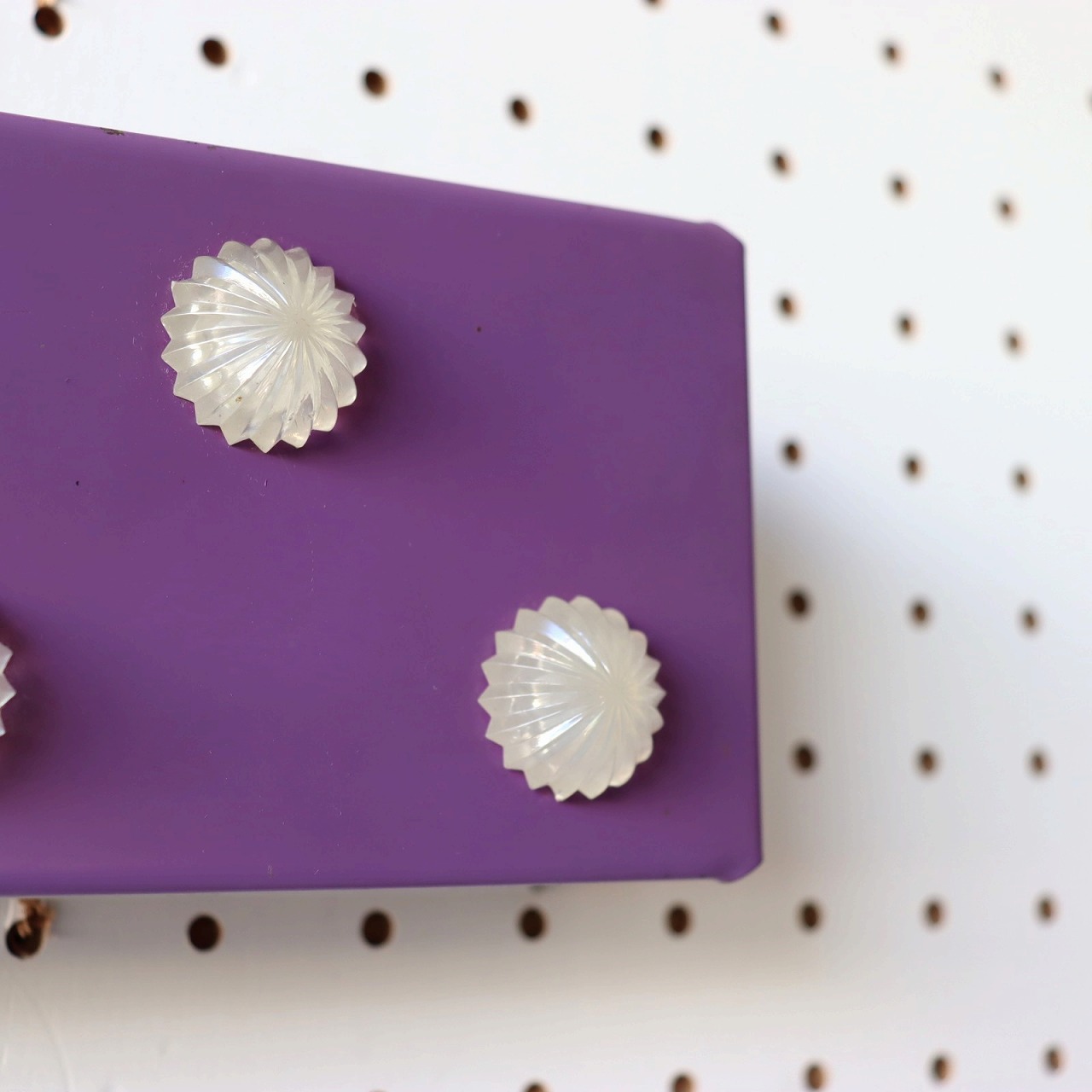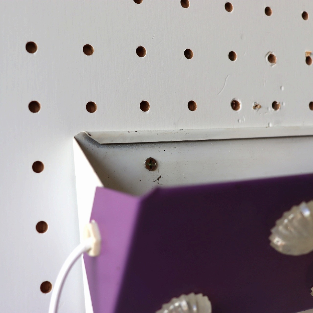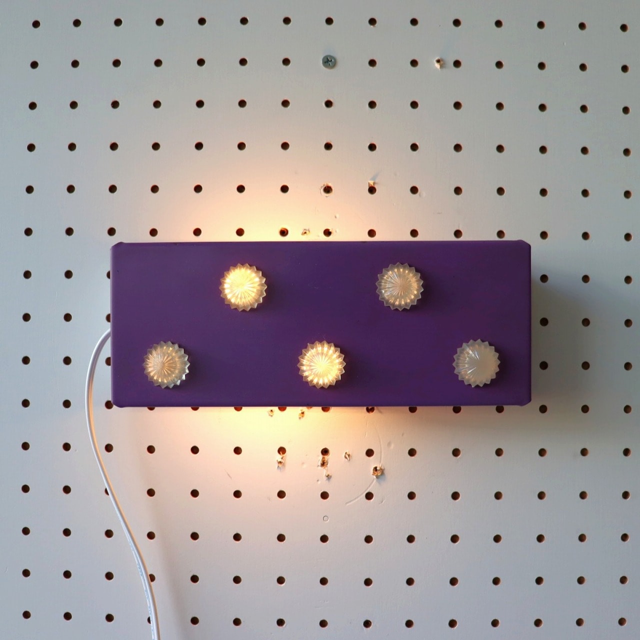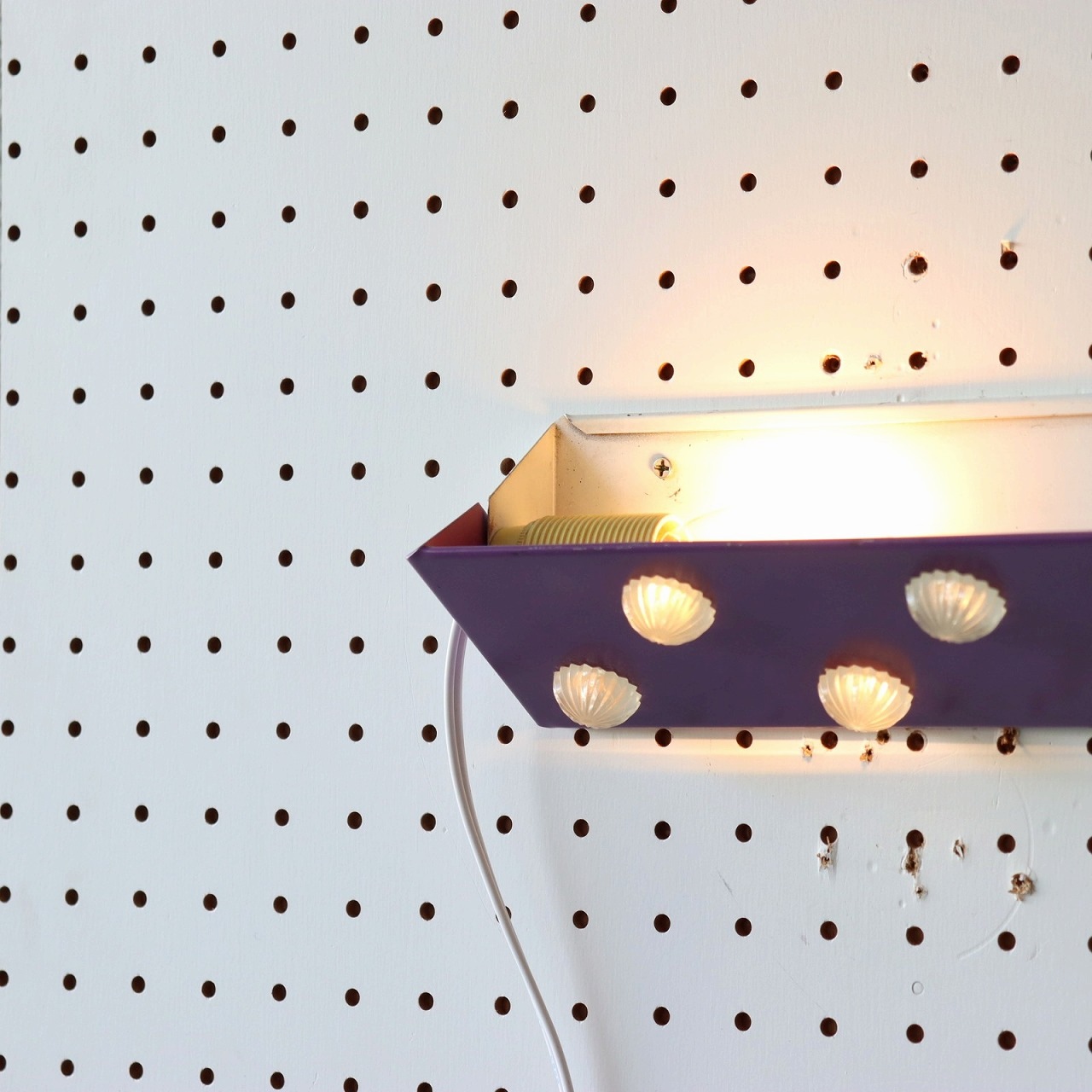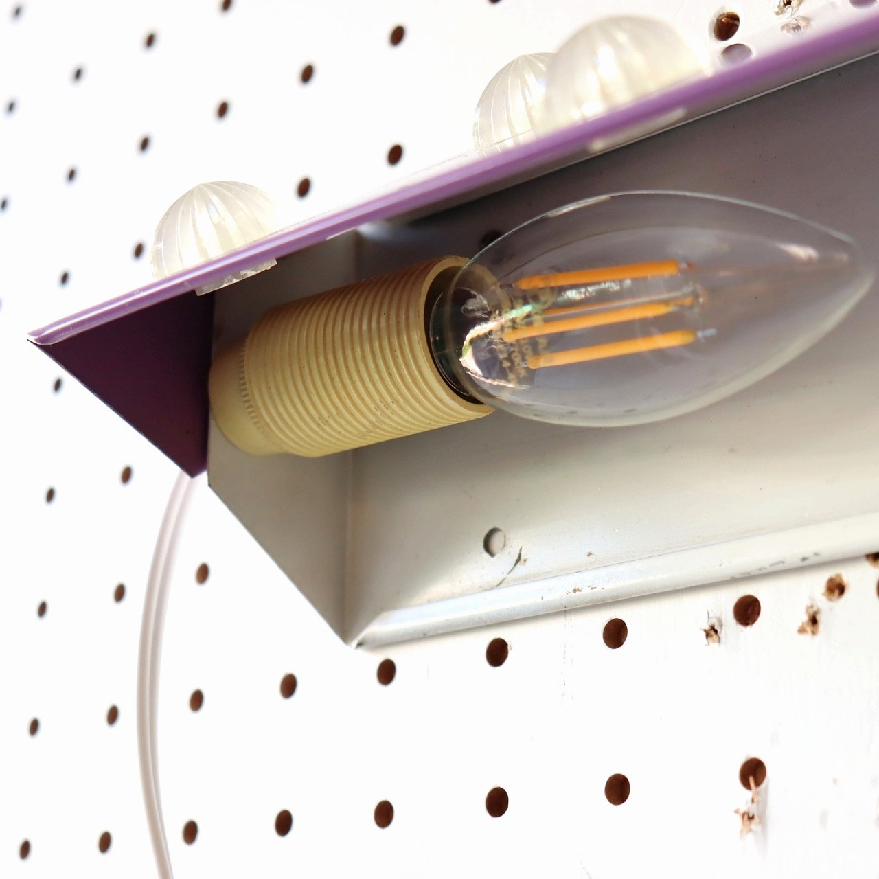 パープルのシェードにコンペイトウのような5つのアクリル飾りが取りついたデザイン。ポップで可愛らしい雰囲気とスチールの質感のバランスが良いですね。