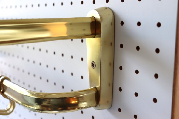 素材はアルミ。ハンガー自体は軽いので取り付けはしやすいかと思います。引っ掛けるものの重さを考慮して、取り付けは左右のビス穴から壁の下地にビスで取り付けてください。