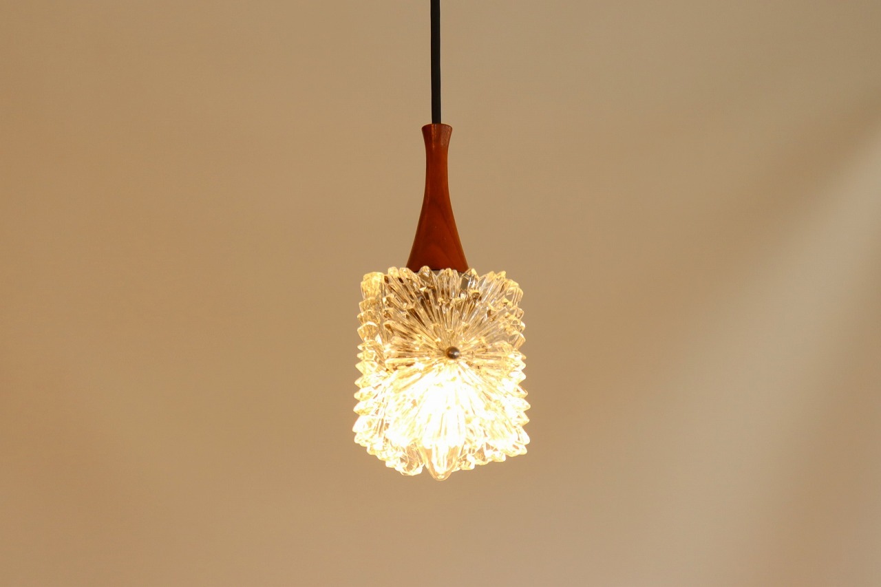 配線はメンテナンス済み。電球はE14の白熱球やLEDがご使用いただけますが、熱を持ちにくいLEDがおすすめです。ガラスにキズや汚れなどはありません。
