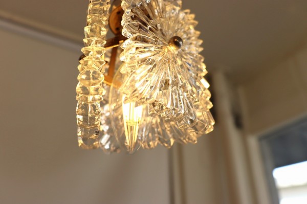 ガラスペンダントランプ。小さなクリアガラスがかわいいらしいペンダントランプ。