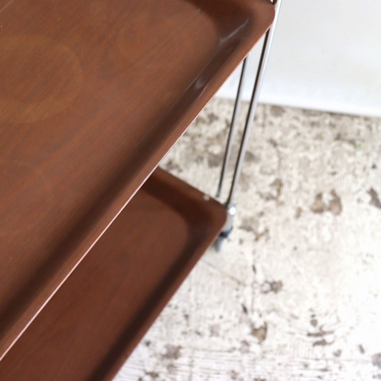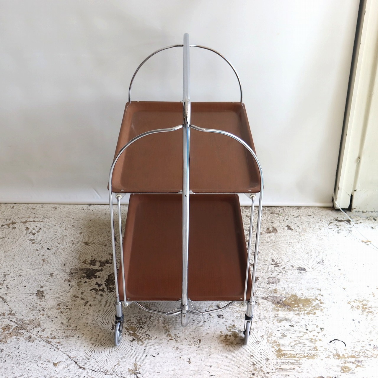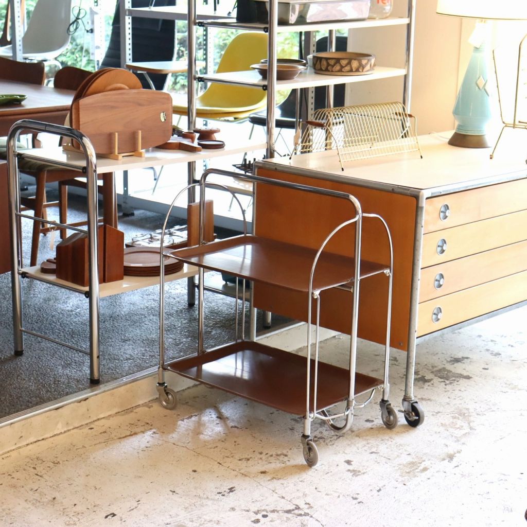 ドイツ製ワゴン。折り畳みのできる2段ワゴンです。折りたたんでも自立する便利なキャスターワゴン。