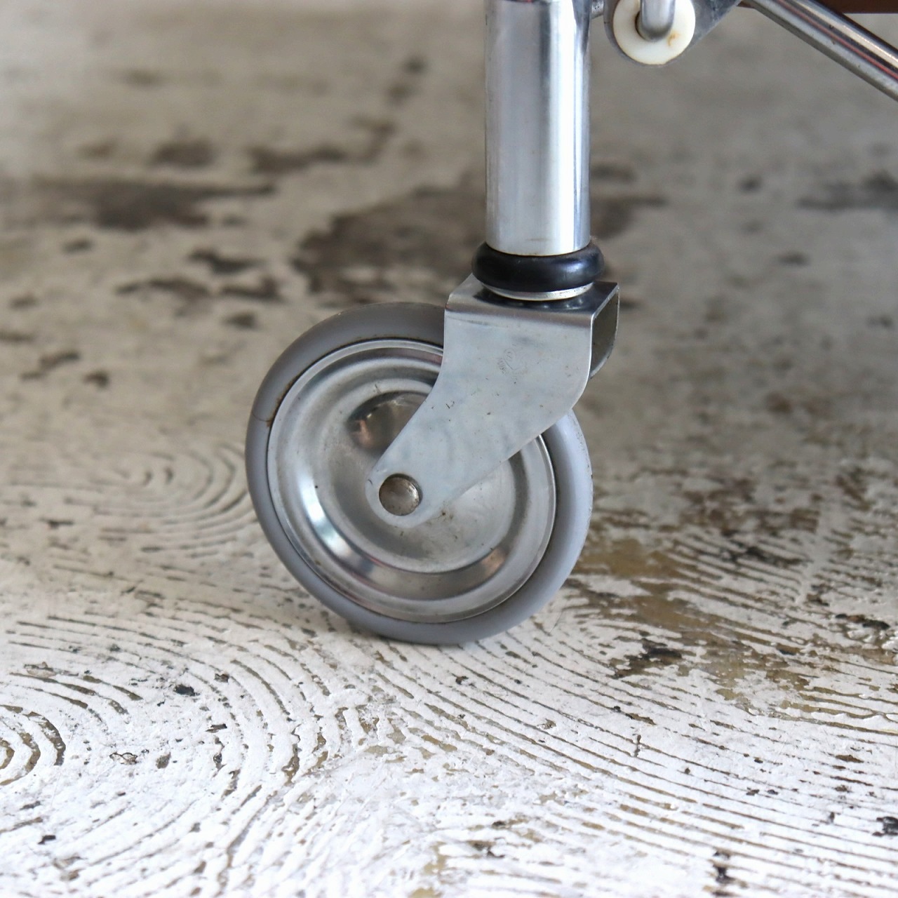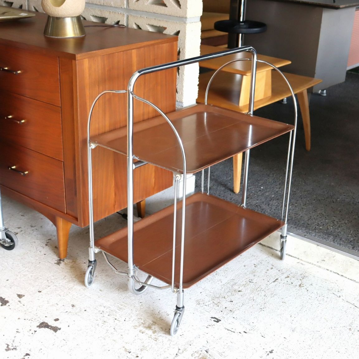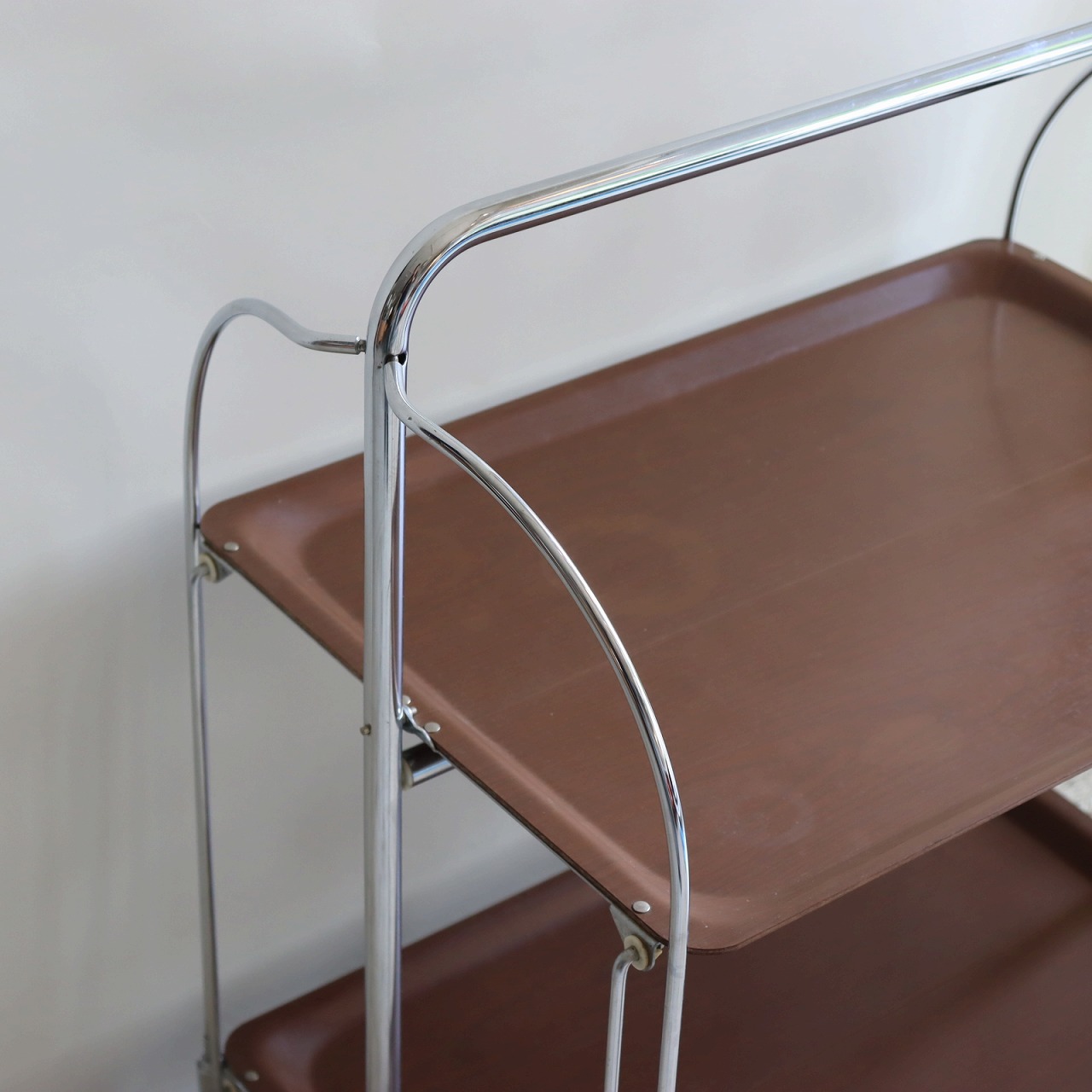 ドイツ製ワゴン。折り畳みのできる2段ワゴンです。折りたたんでも自立する便利なキャスターワゴン。