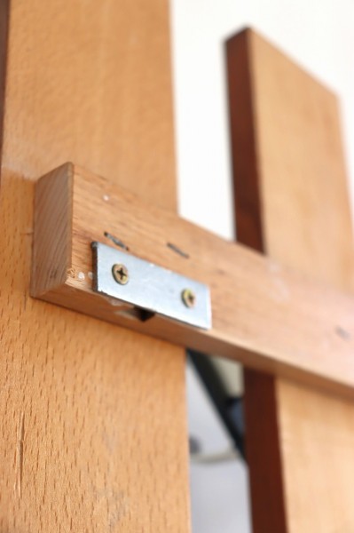 細かいキズはありますが、目立つようなダメージは見当たらないです。背面左右に引っ掛け用のプレートがあります。重さは8キロほどありますので、取付ける壁やフックの強度にご注意ください。