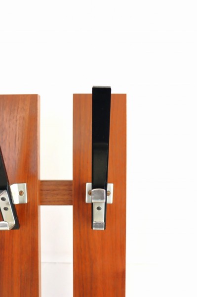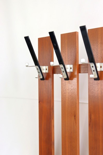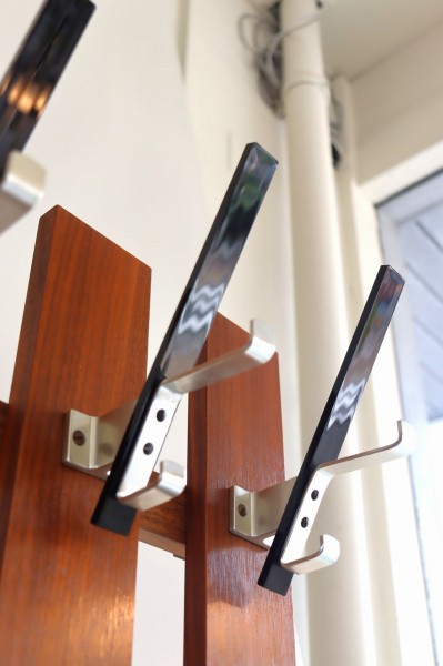 上部には角の落ちた丸みのある金属製のフックと直線的なプラスチック樹脂製のフックの組み合わせのフックがついています。材質の異なった艶感とコントラストが美しいですね。