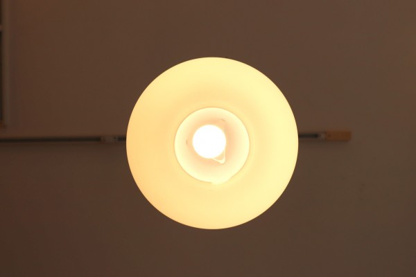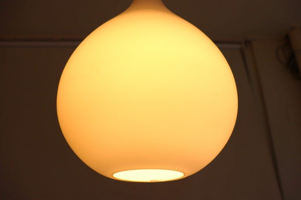 シェード全体がガラスなので、電気をつけると全体が明るく点灯します。フロストガラスならではの柔らかい灯りは落ち着いた空間を演出してれそう。