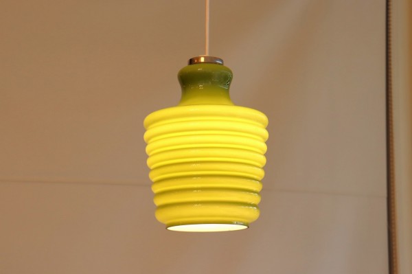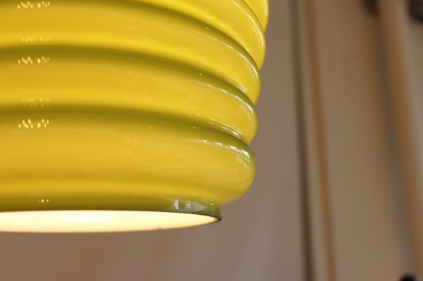 リブ状のフォルムが特徴的なデザインです。厚みのあるぷっくりとしたガラスシェードを縮ませたようなつくりで、アコーディオンのように伸び縮みしそうな雰囲気ですね。