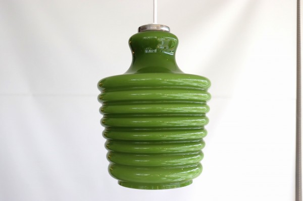 グリーンガラスペンダントランプ。ガラスで作られたシェードのランプです。