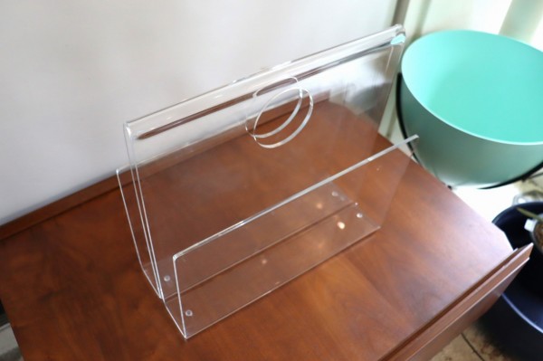 マガジンラック。アクリルを曲げて作られたアイテムです。