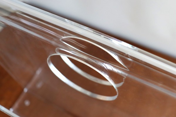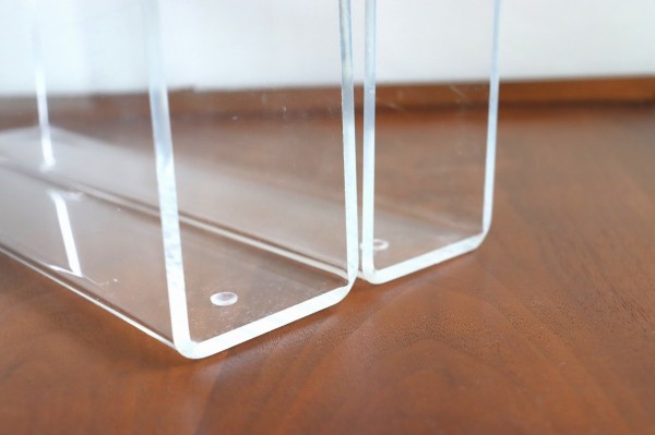透明なアクリル樹脂を加工して作られたマガジンラック。視線が抜けるアイテムなので、置いていても圧迫感はなく、飾る雑誌も綺麗に見せることが出来ます。