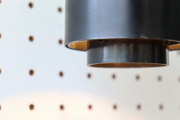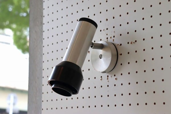 スポットシェードの壁掛けの照明。シェードの素材はアルミニウムで、アルミならではの独特な質感が良く感じられます。無骨で雰囲気のある佇まいで、存在感がありますね。ブラックのシェード部分も太すぎずすっきりしたフォルムで、スタイリッシュです。