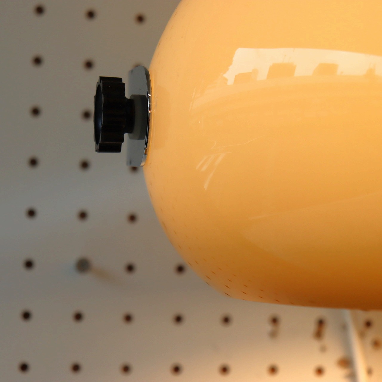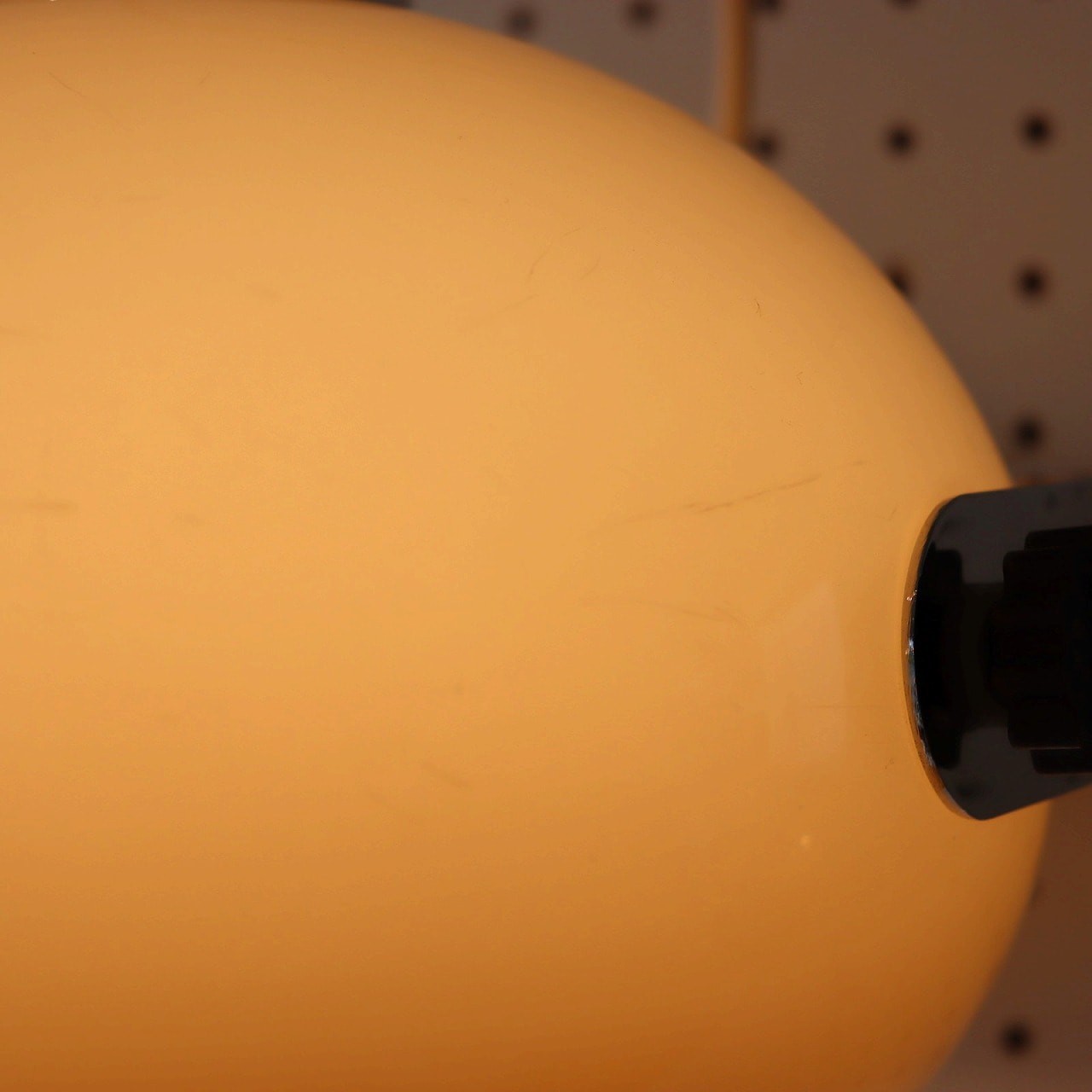マッシュルームのようなデザインがかわいいランプ。柔らかいフォルムはベージュのアクリル樹脂で、点灯時はオレンジ色のように見えます。