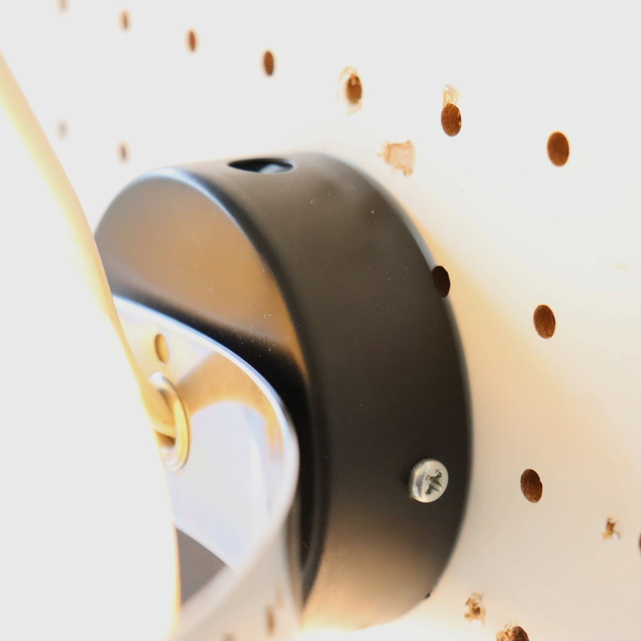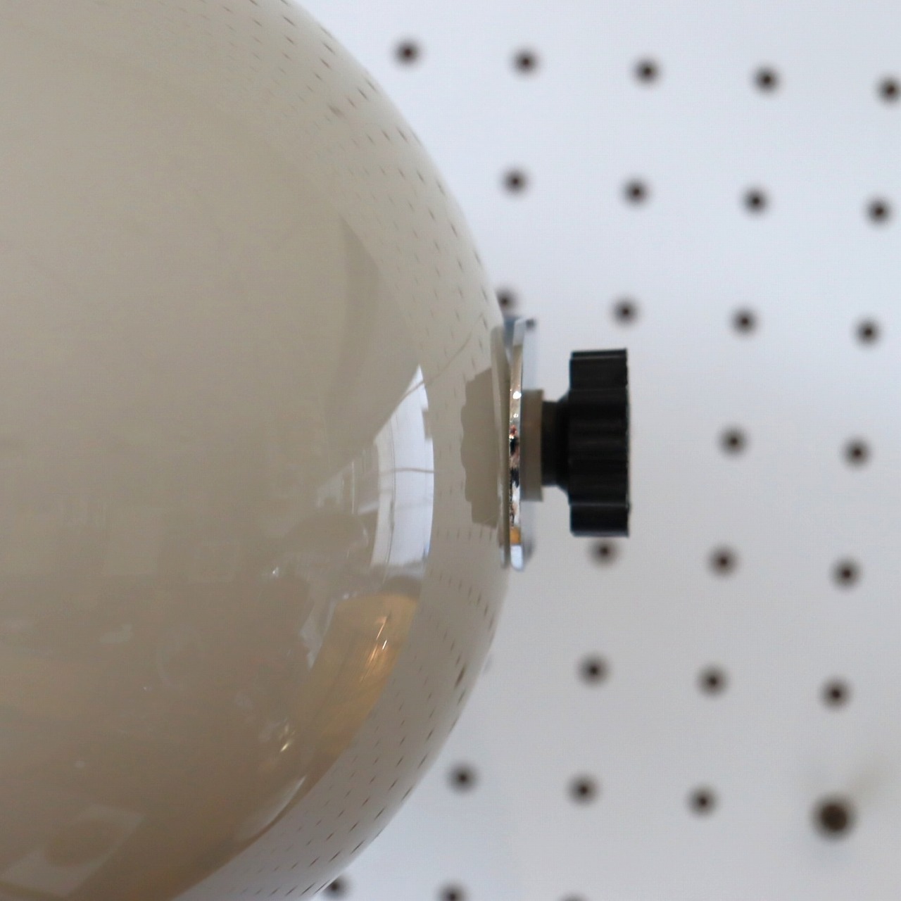ベースからU字のシルバーアームでシェードを挟み込むように取りついています。前後180°左右360°回転するので好きな向きにシェードを向けることが出来ます。
