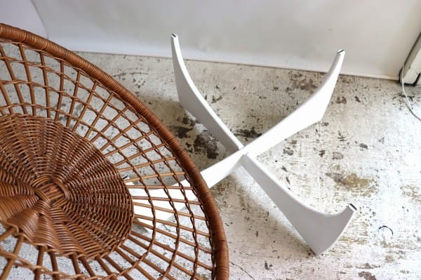 ラタン製のバスケットも小粋で良い仕事をしています。緩やかな傾斜のついたフォルムはどこから見ても綺麗なシルエット。取り外しも可能なので、また違った雰囲気を楽しめますね。