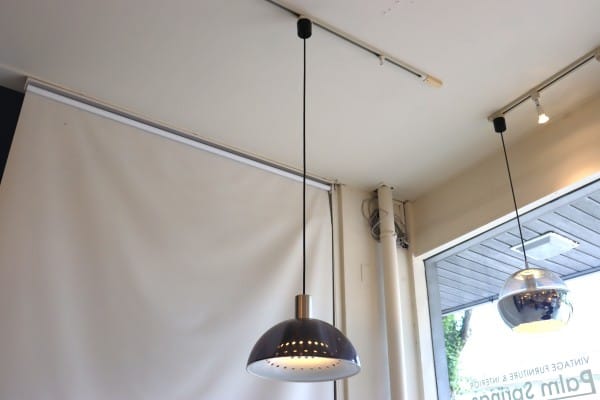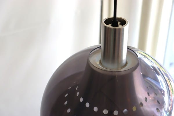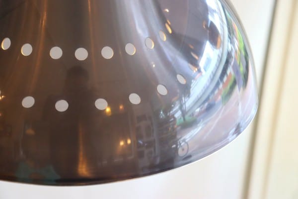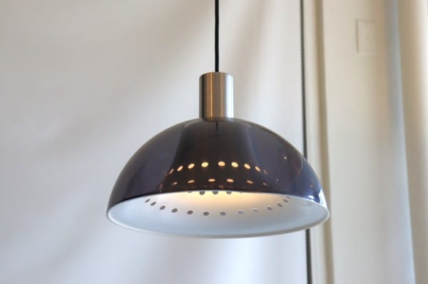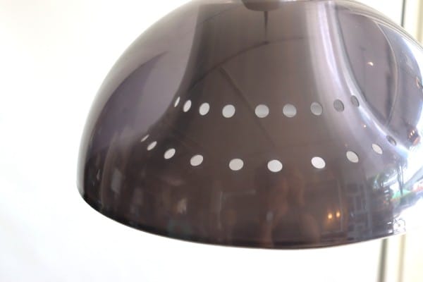 紫がかったスモークのプラスチックシェードとスチールの組み合わせのデザインは、スペースエイジを思わせる近未来的であり、レトロな雰囲気が素敵です。
