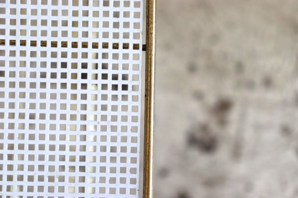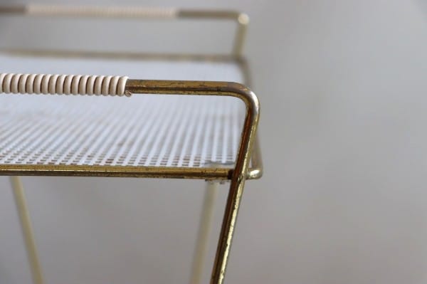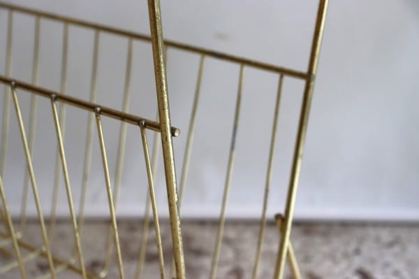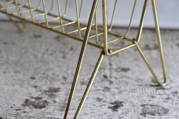 ゴールドの細いワイヤーで構成された上品なデザインのこちら。逆三角形のように下に行くにつれすぼまっていて、脚もミッドセンチュリーらしいフォルムで、ハノ字に開いています。
