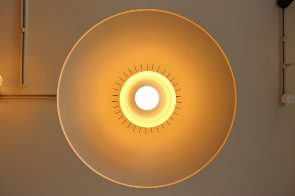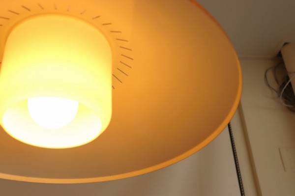 乳白色のガラスは電球の光を優しく照らしてくれるので、柔らかで落ち着いた空間を演出することが出来ます。上部も光るので天井付近もほんのり明るく、メインは下を照らす照明。夕焼け空のようなガラスの美しいグラデーションも素敵ですね。