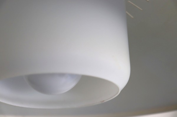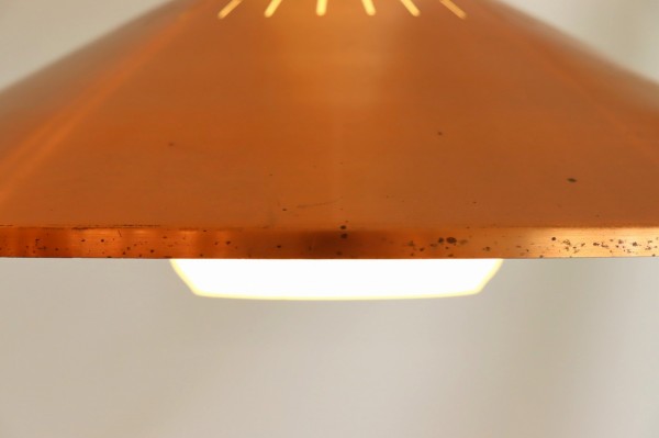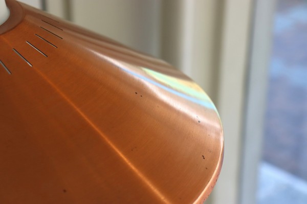 シェードはガラスシェードに引っ掛かっている構造で、シェードに放射状に沿って開けられた細かなスリットが良いアクセントになっています。ヴィンテージならではの鈍い輝きが存在感を際立たせていますね。