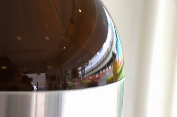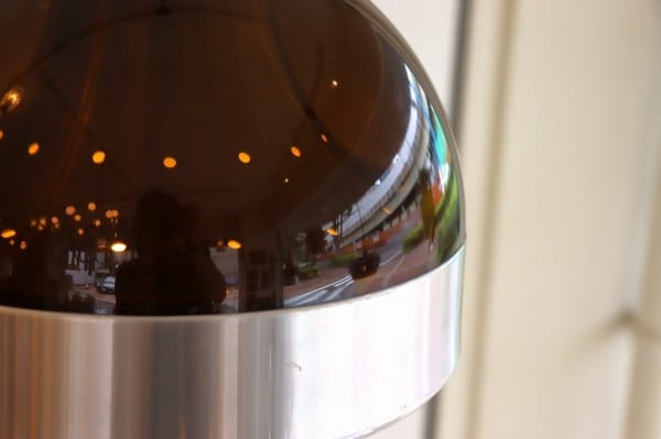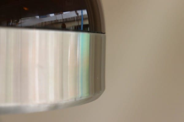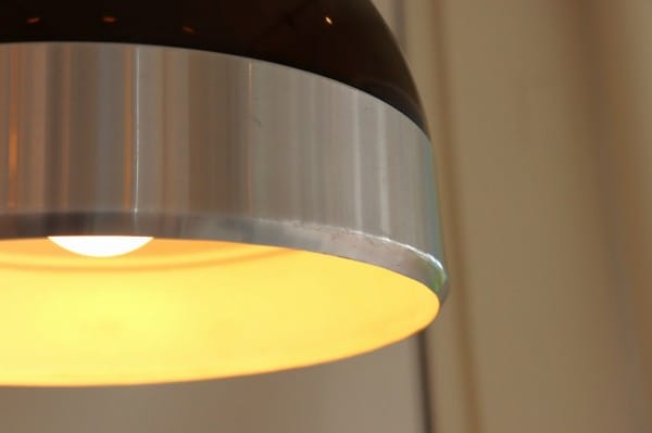 半球体のようにまるいフォルムで、シェードの上半分にはプラスチックが、下半分にはスチールがリングのように付けられています。スチールシェードにプラスチックカバーのミックスはダッチデザインの特徴です。