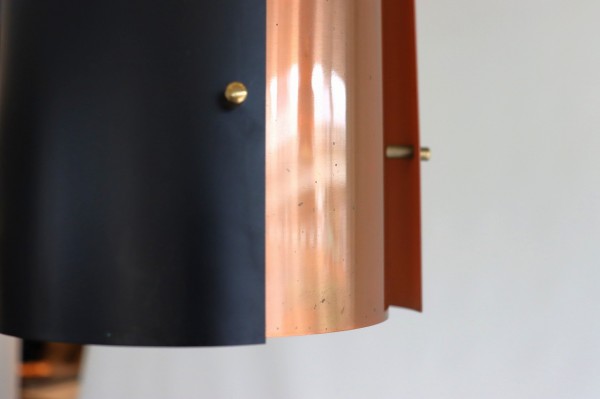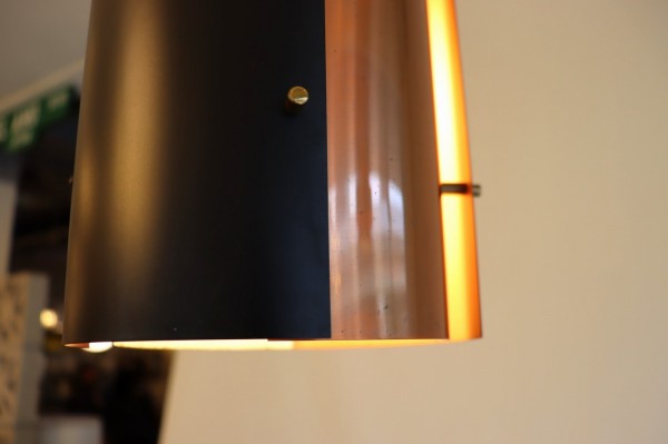 縦長のシルエットでスッキリとしたデザイン。緩やかに曲げられた4枚のプレートが合わさって作られています。ブラックとカッパーの組み合わせは上品かつヴィンテージらしい深みのある佇まいですね。