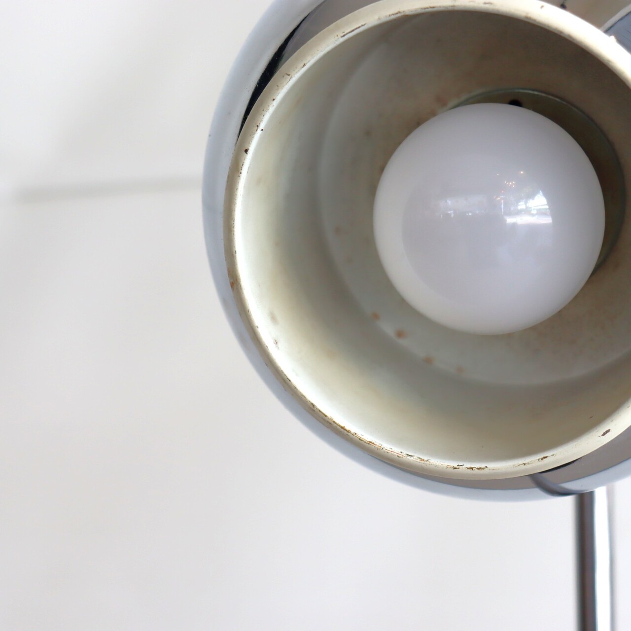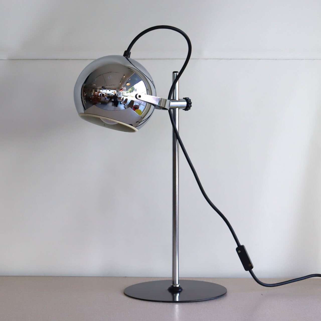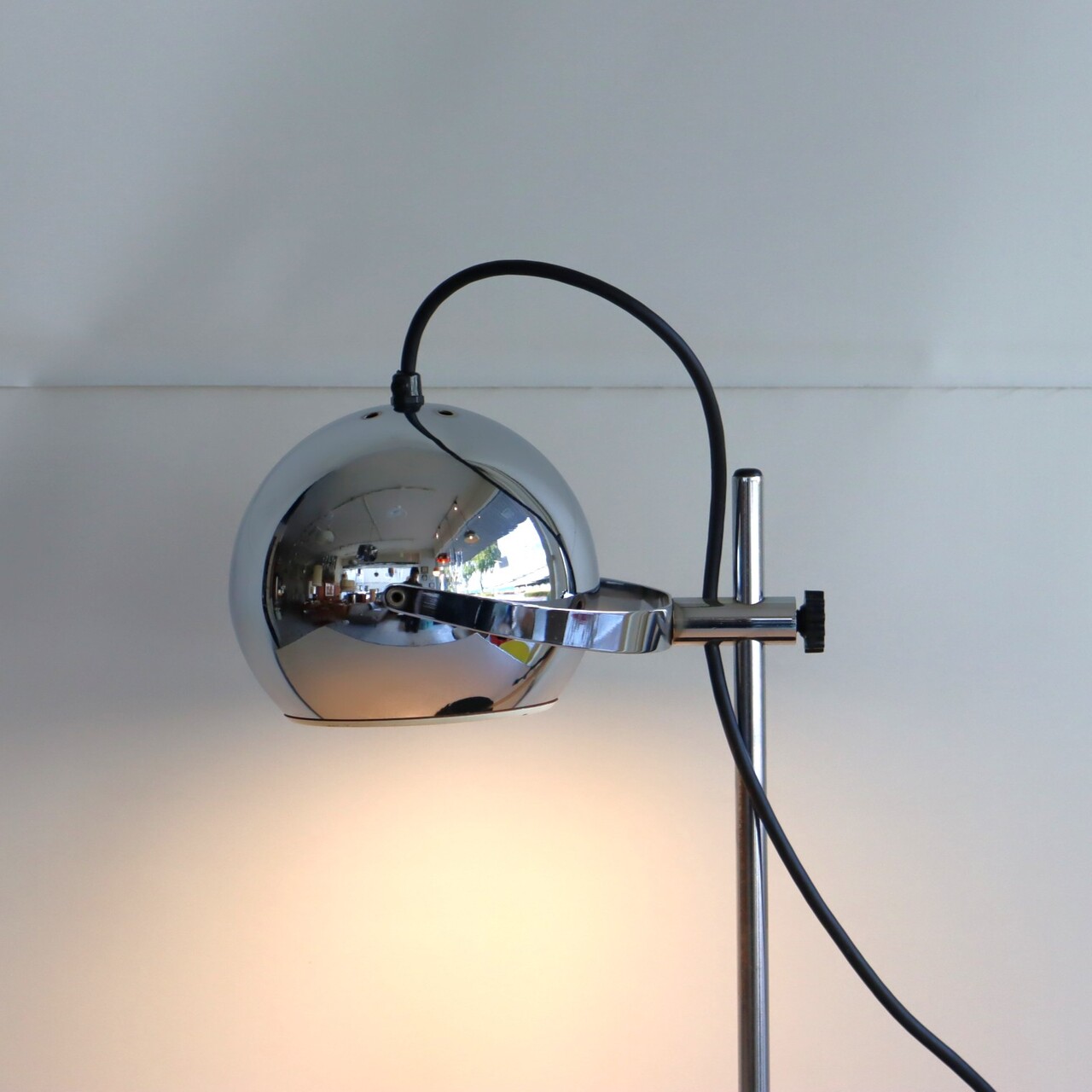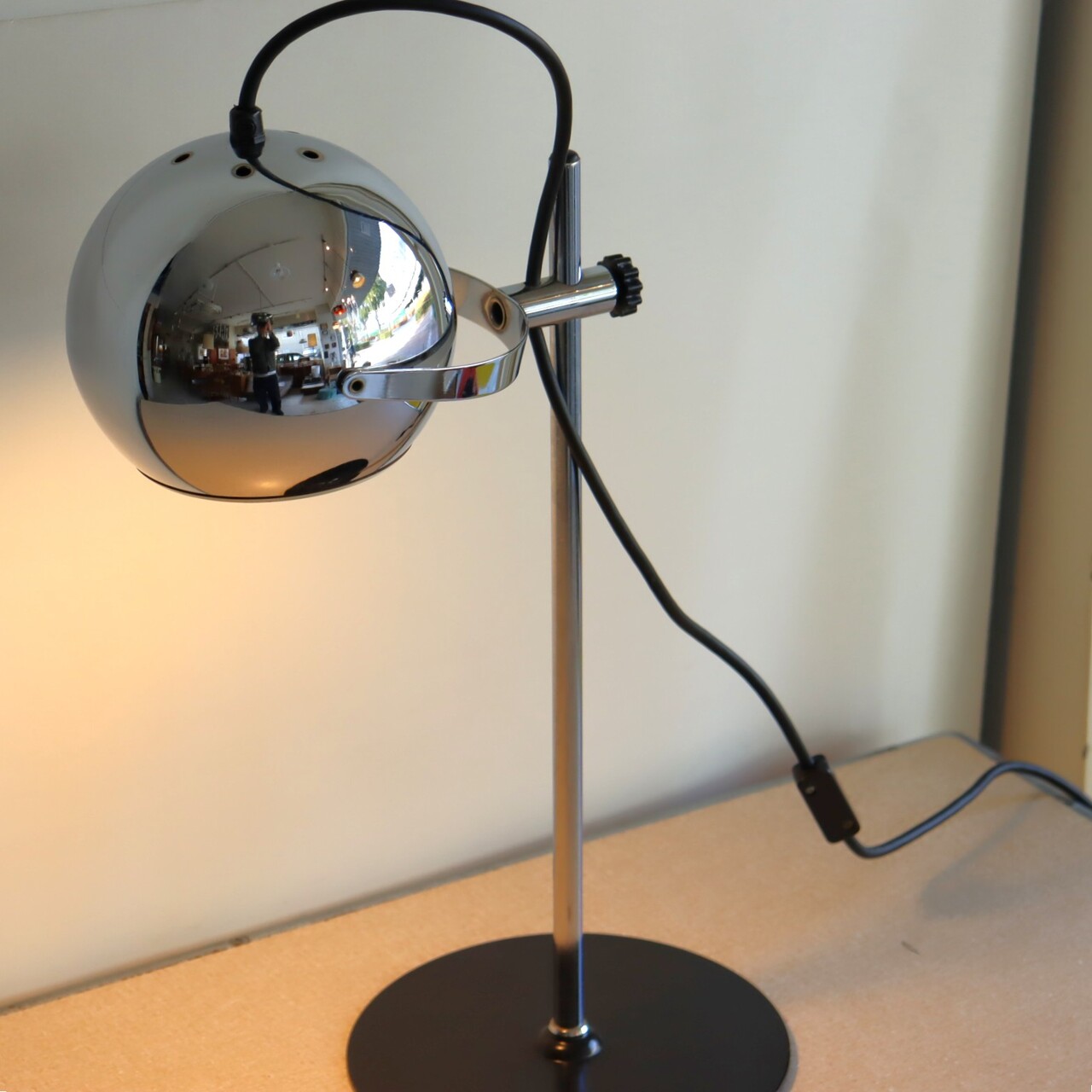 デスクランプ。クロームに輝くアイボールデスクランプ。