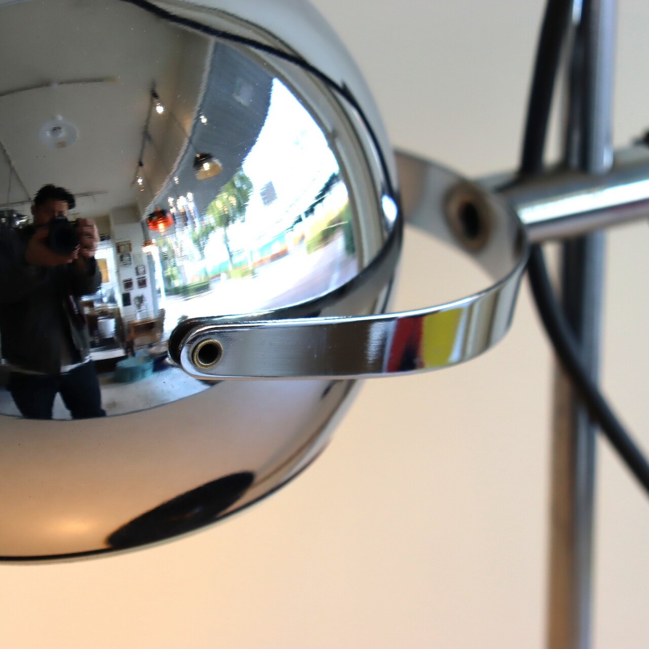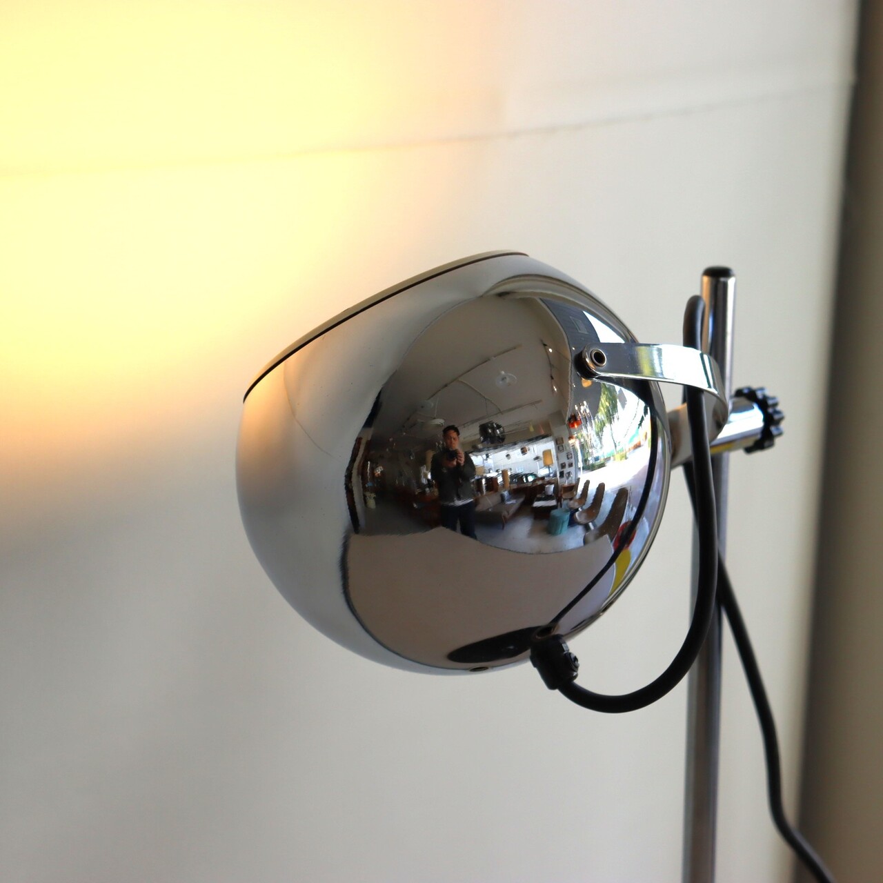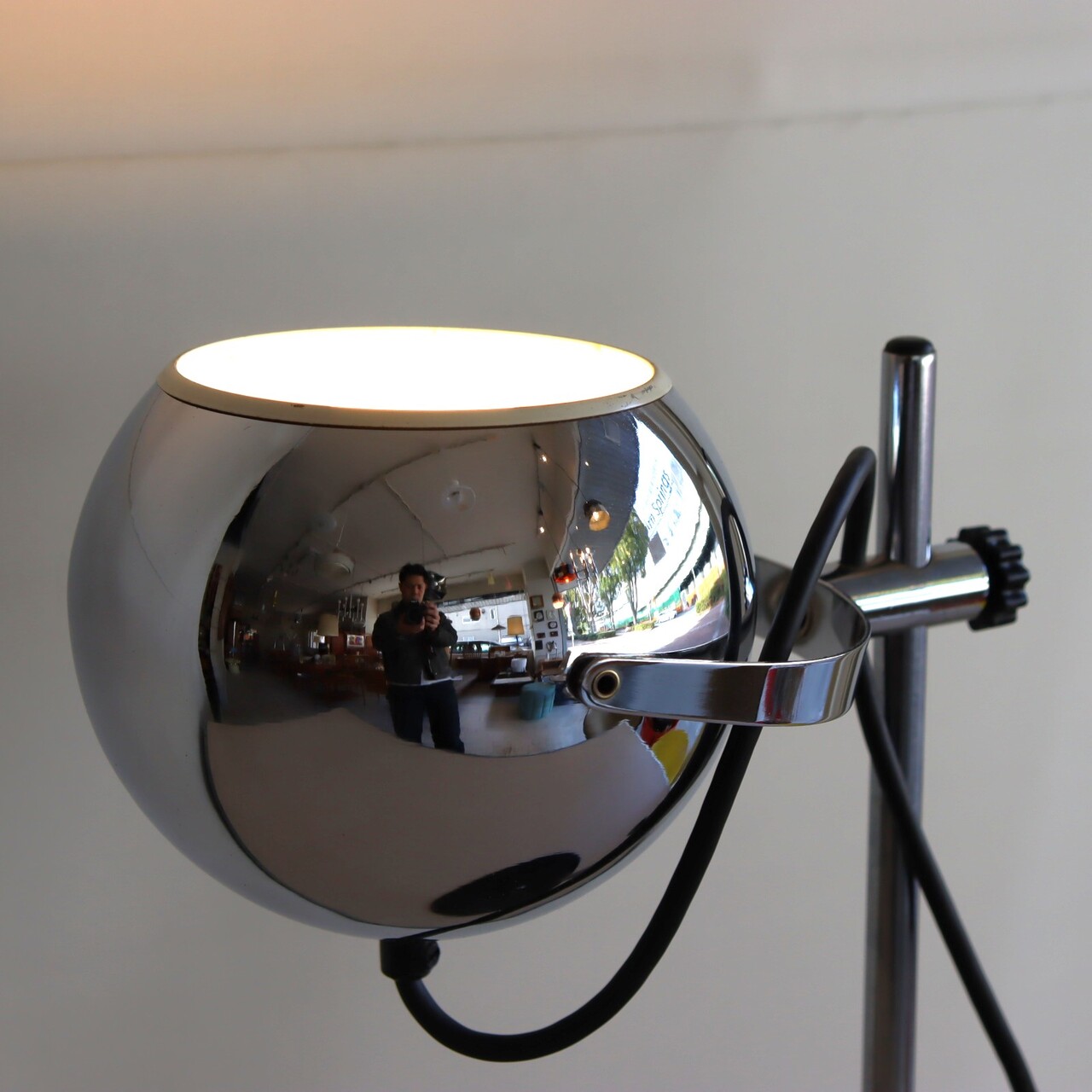 デスクランプ。クロームに輝くアイボールデスクランプ。