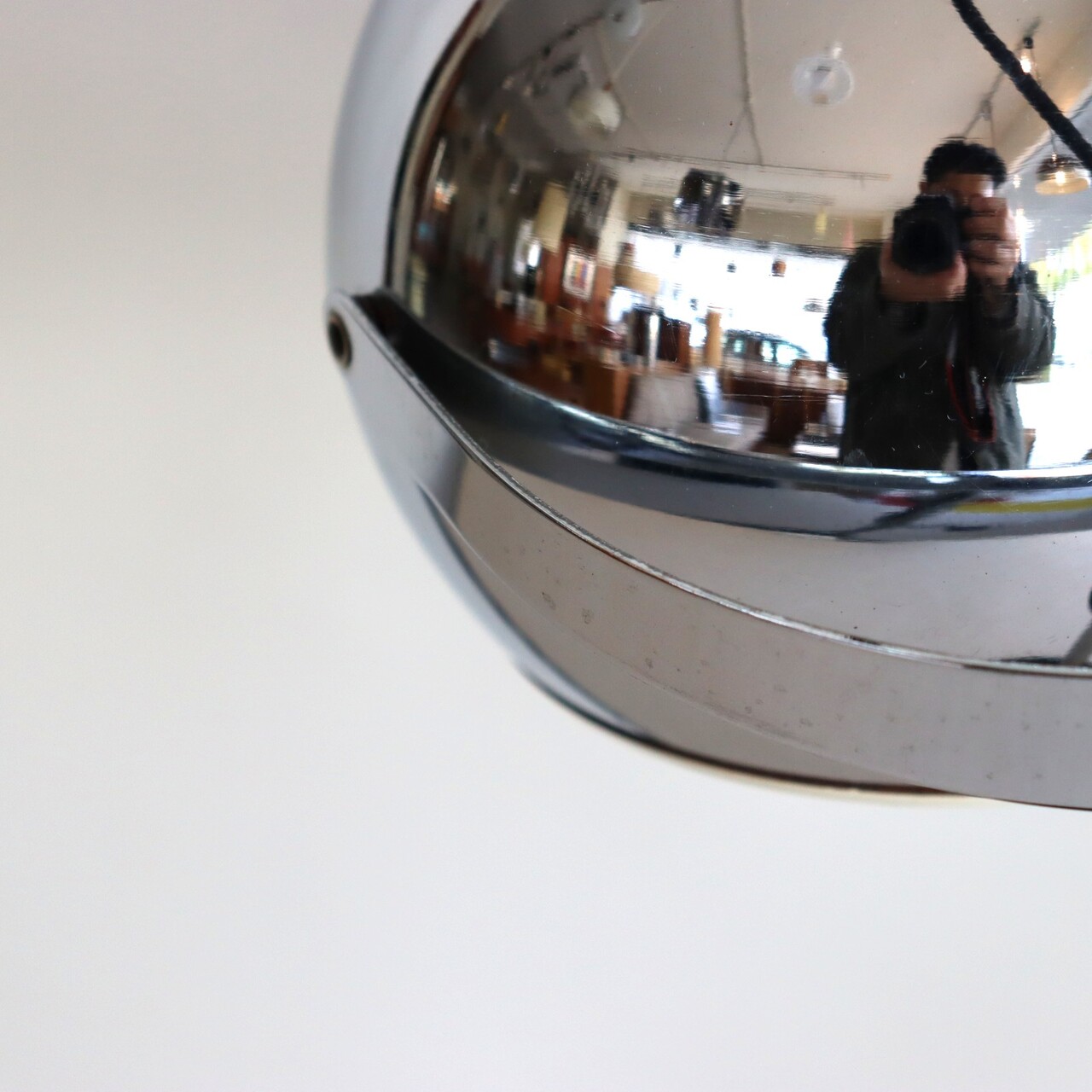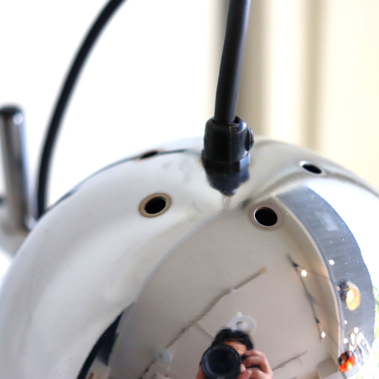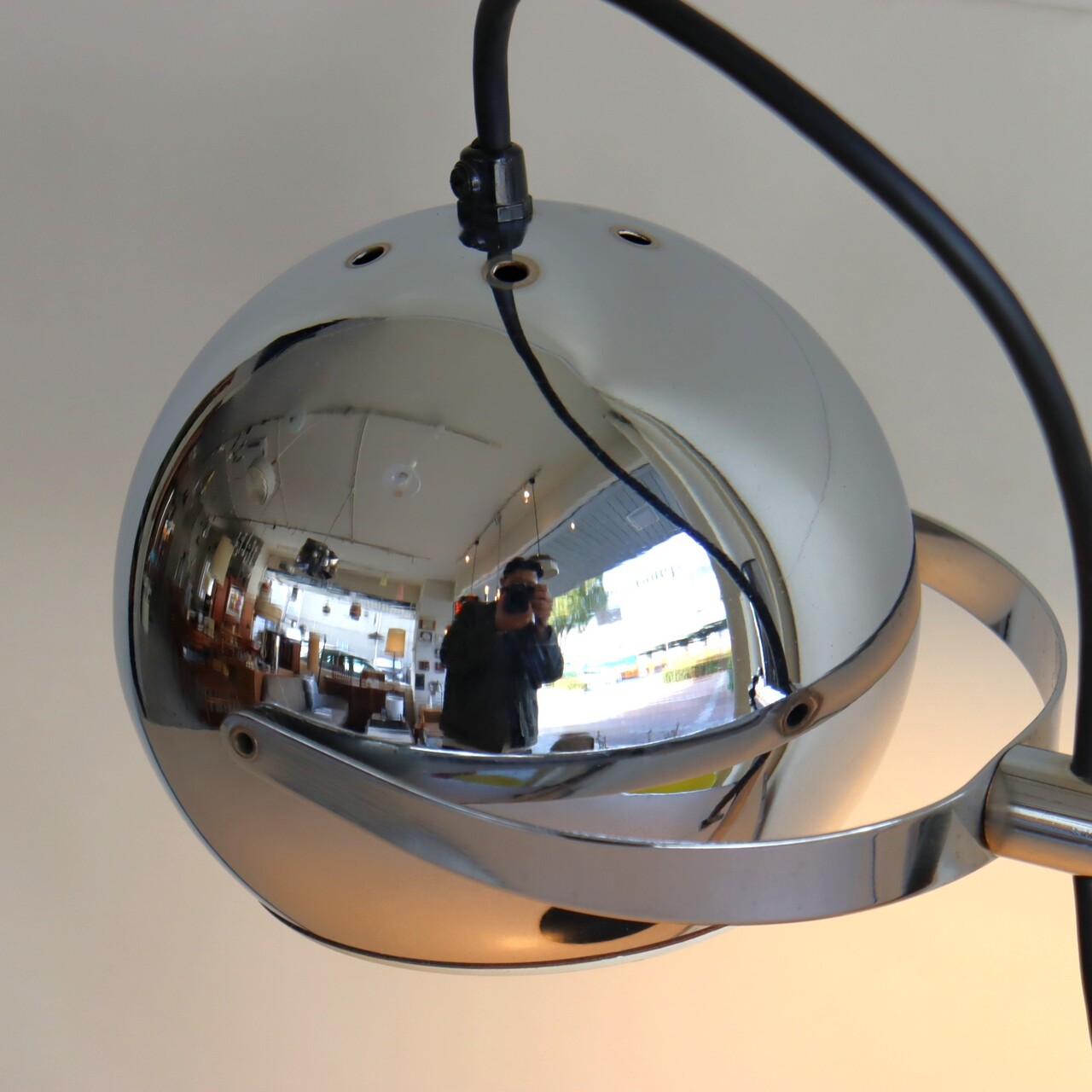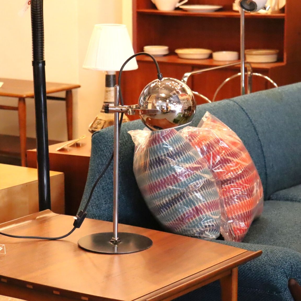 デスクランプ。クロームに輝くアイボールデスクランプ。