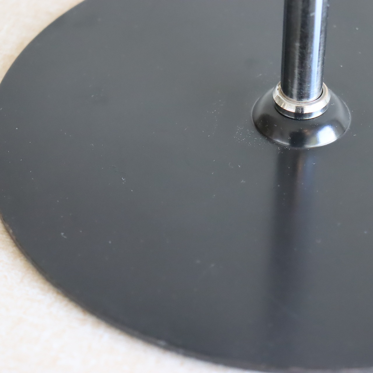 クロームと幾何学的な端正なデザインでクールさはもちろん、コロンとした見た目の可愛らしさも併せ持つ一灯。シルバー×ブラックで50年代前後のインテリアに見られる近未来的な雰囲気も感じられます。直線的なアームと薄いベースで、球体のシェードがより際立ちますね。