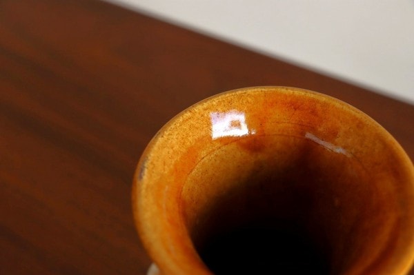 気泡のエンボスがまさに溶岩が流れているような雰囲気を演出しています。ハンドメイドで描かれたデザインと釉薬の溶け具合が個性的で目を引きますね。