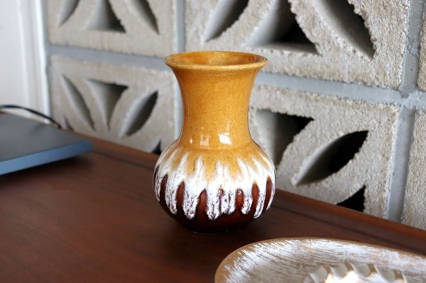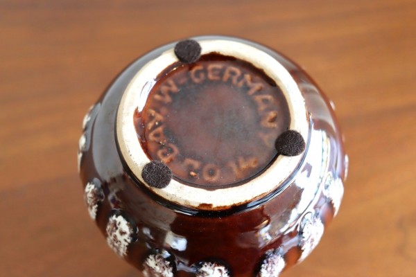 西ドイツ製陶器のフラワーベース。陶器でできた花びん。