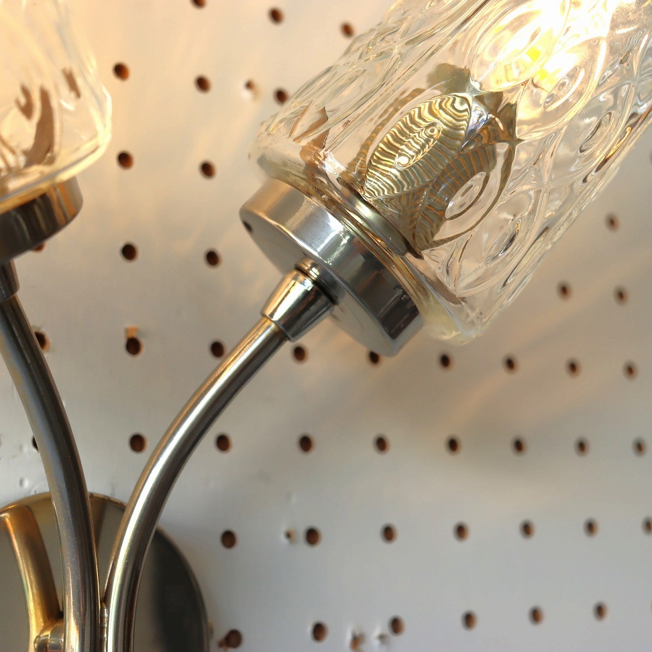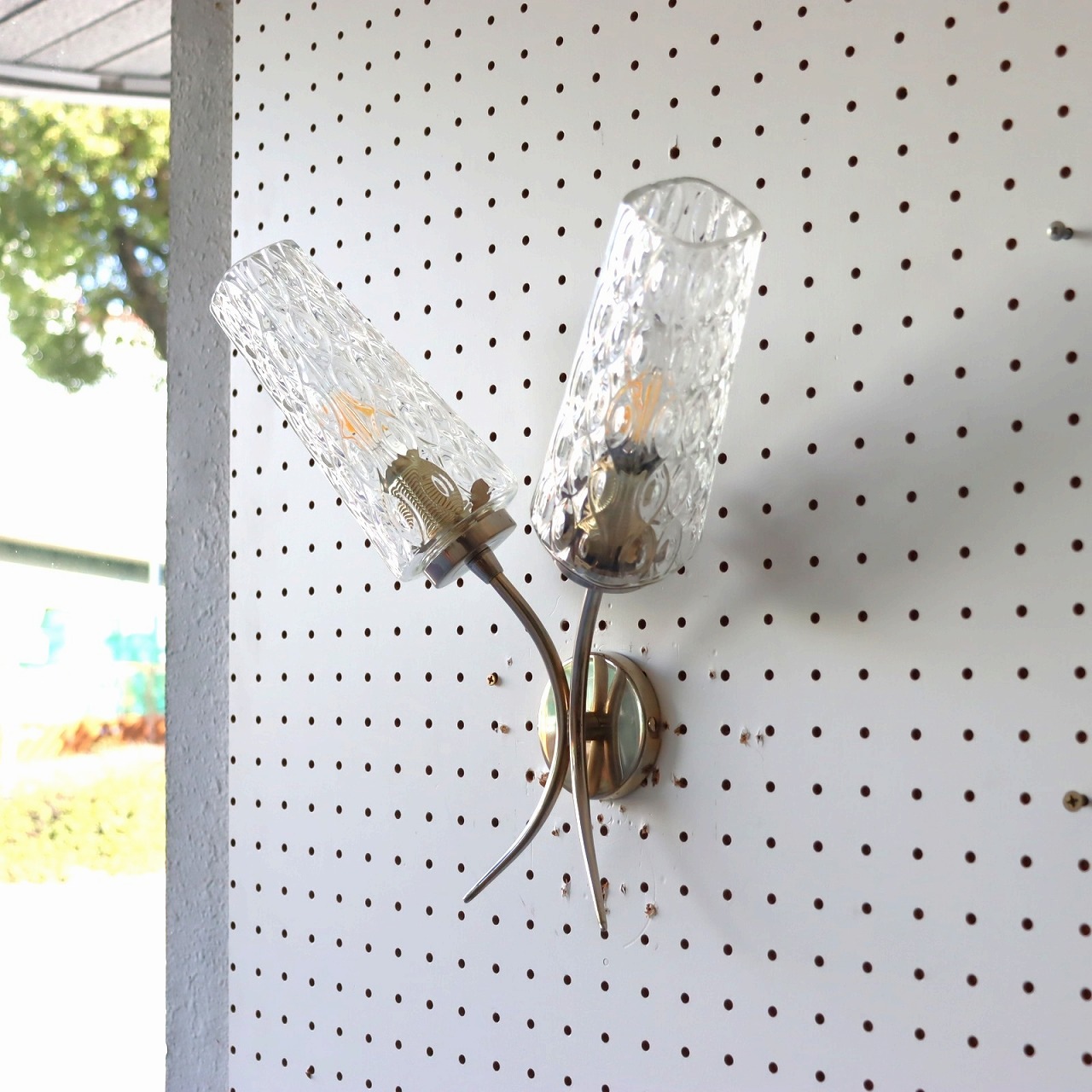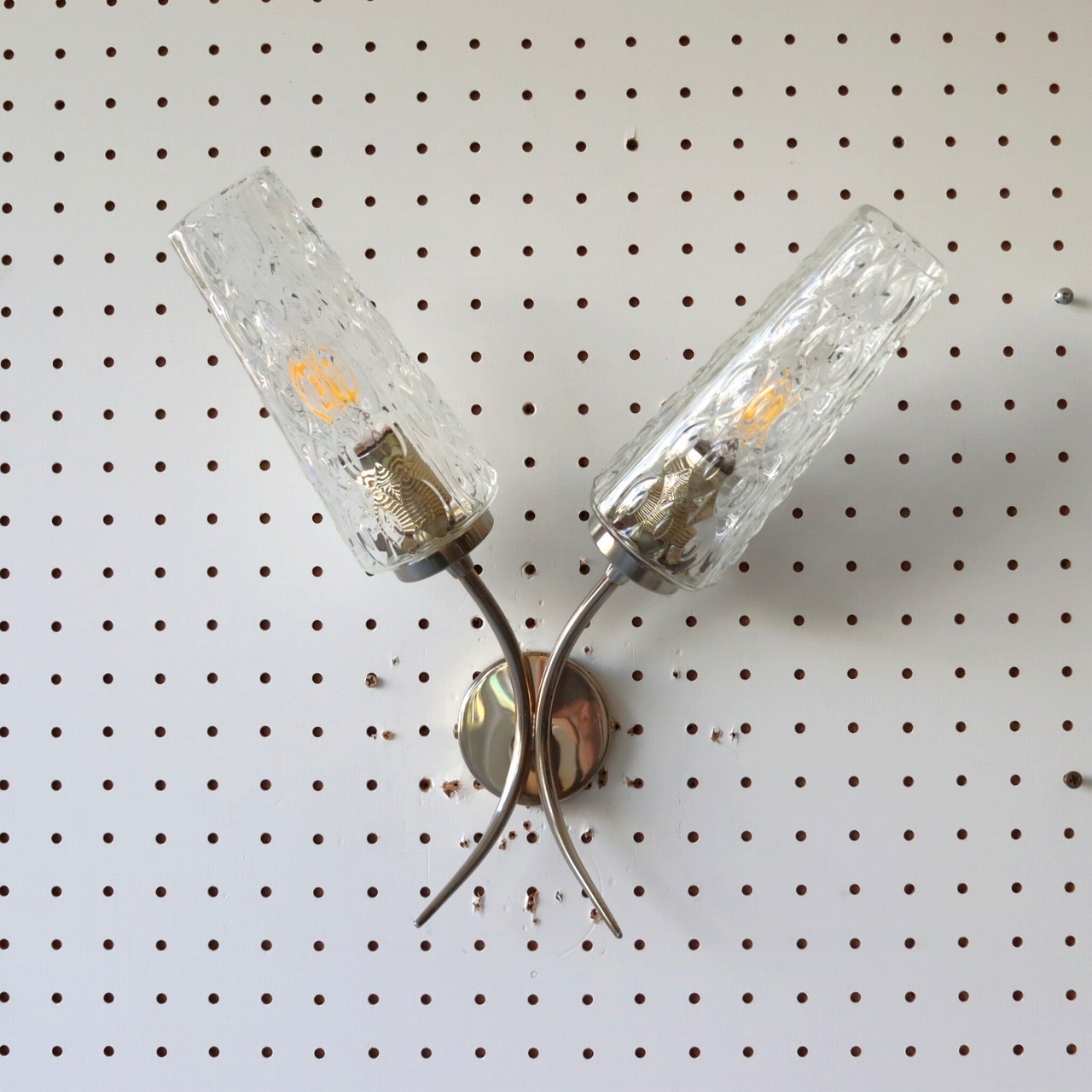 2灯ガラスブラケットランプ。ガラスシェードが2つついた壁付けのランプ。