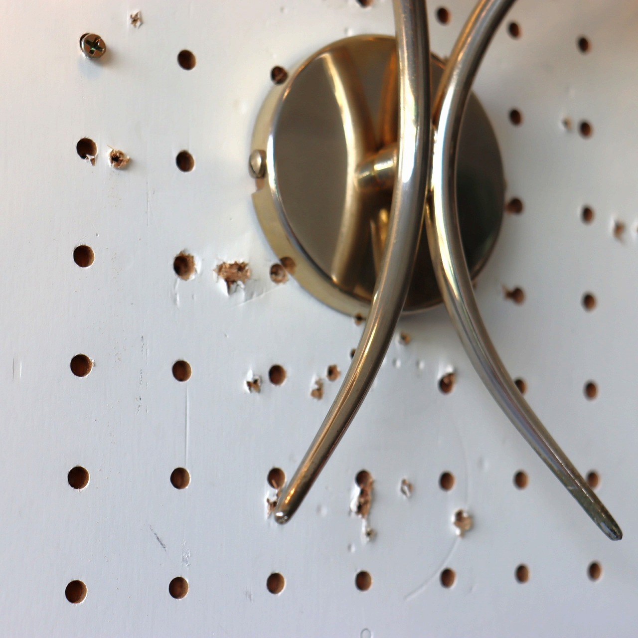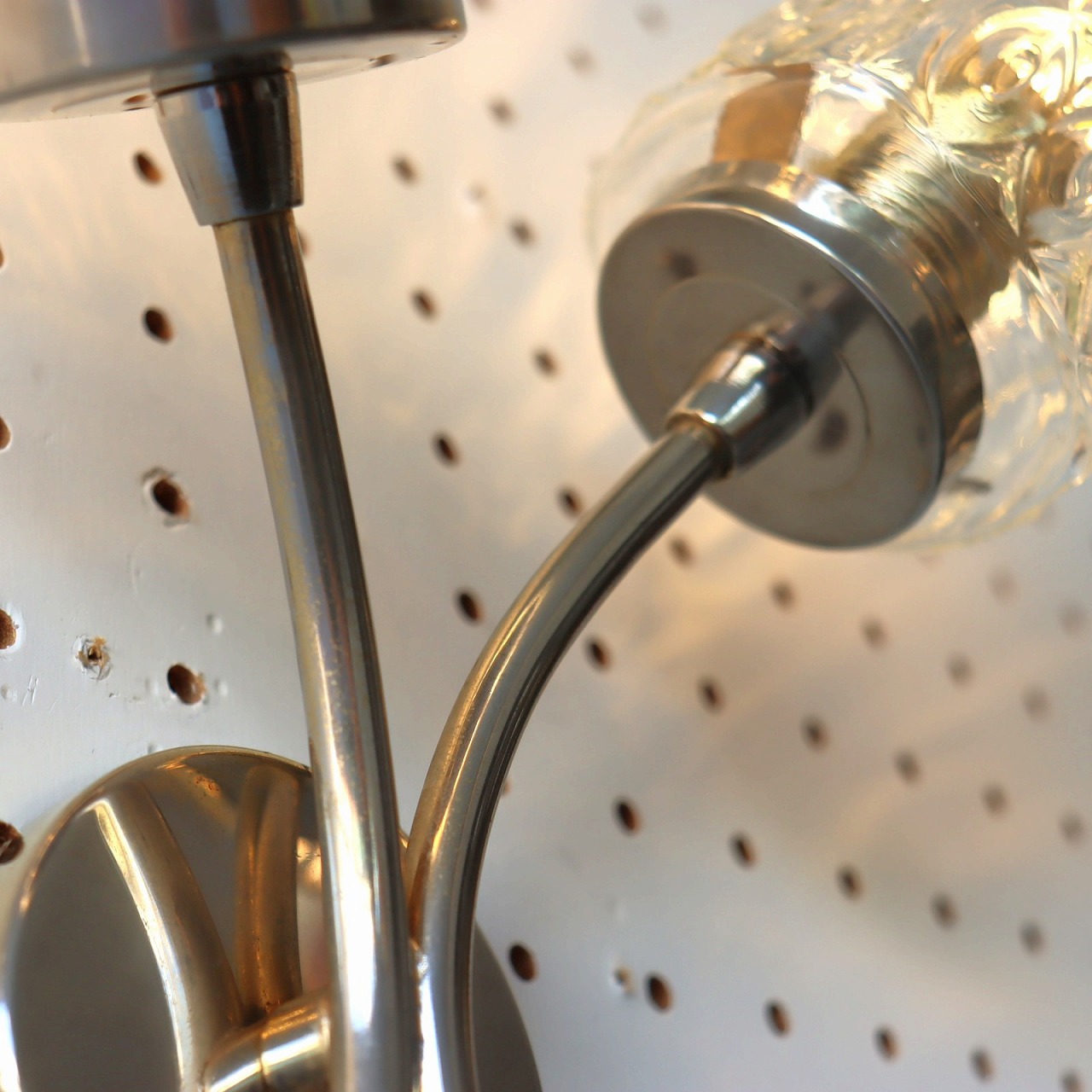 ベースから2方向に分かれたアームは緩やか曲線を描いています。淡いシャンパンゴールドはガラスともよくマッチしていてとても綺麗。