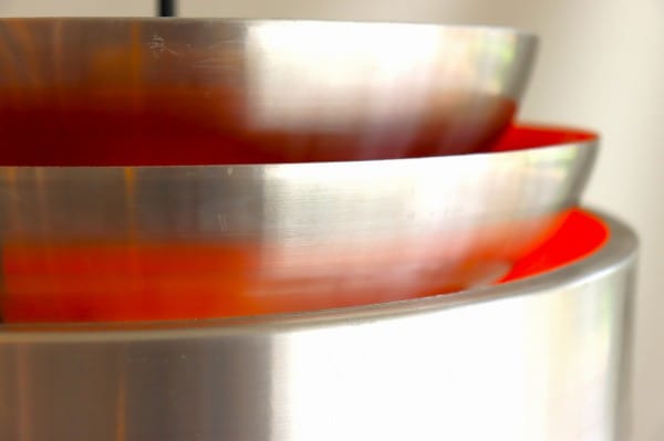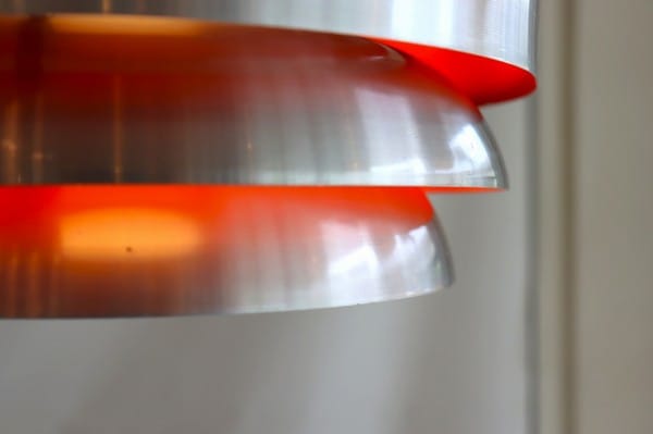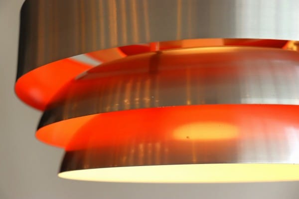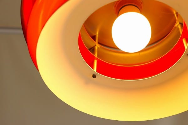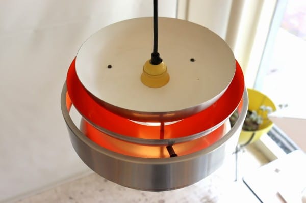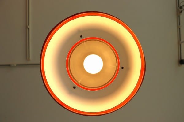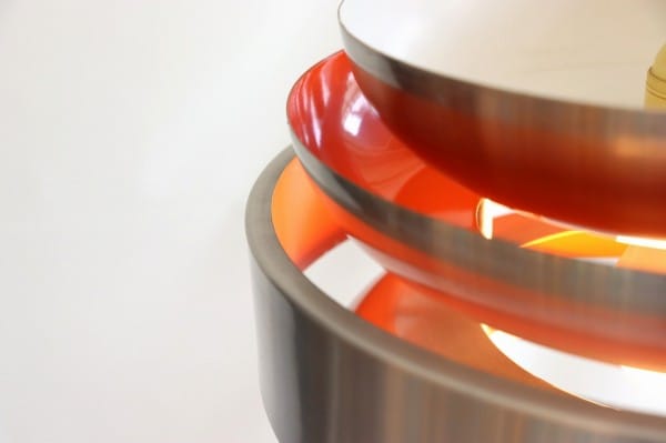 内側のオレンジの塗装が、電球の灯りを反射させて、温かみのある明るい光を演出してくれます。点灯時と消灯時では異なった雰囲気を持つランプです。
