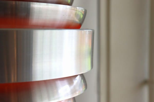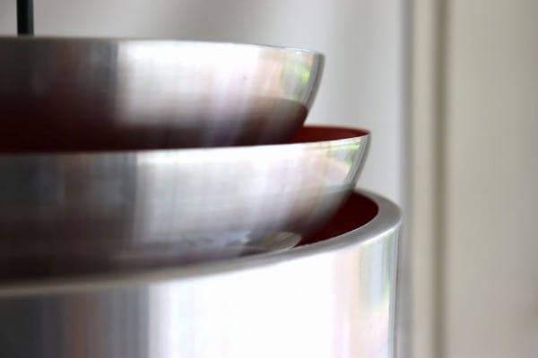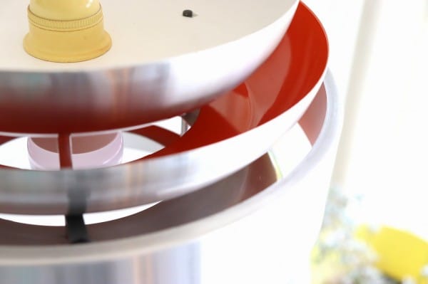 大小の2つの異なる大きさのシェードを重ねて、隙間からの光を楽しむビンテージランプらしいデザインです。