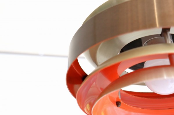 大きさの異なるシェードを組み合わせたデザイン。隙間からの光を楽しむデンマークのビンテージランプらしいつくりで、直接光源が目に入りにくく、シェードの計算された美しいバランスが魅力的です。