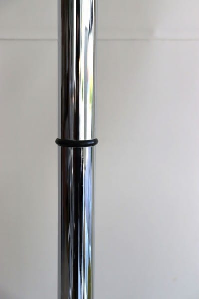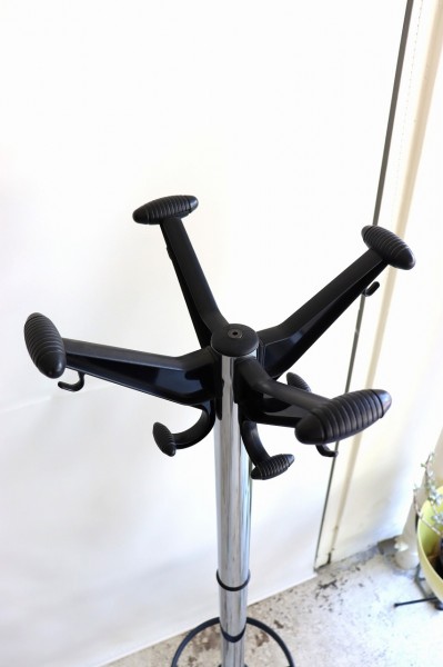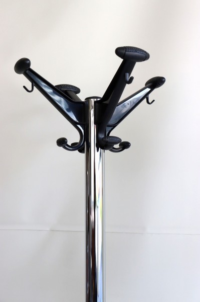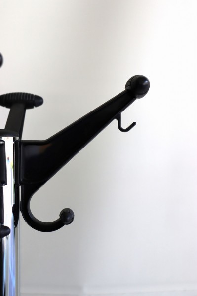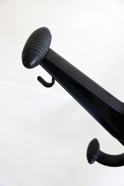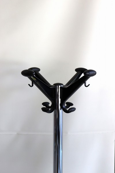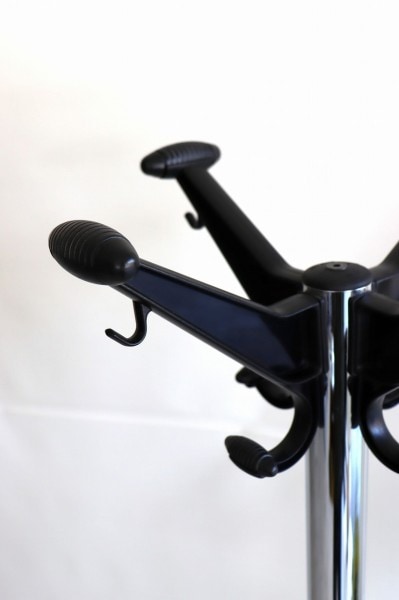 クロームメッキの支柱に、スチールのベース、プラスチック樹脂製のハンガーが付いたつくり。フックの先端はゴム素材で出来ているので、滑り止めにもなっています。