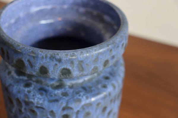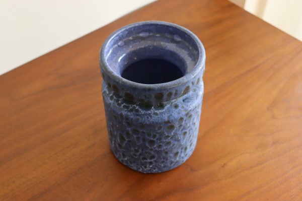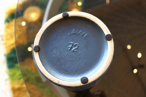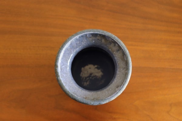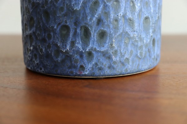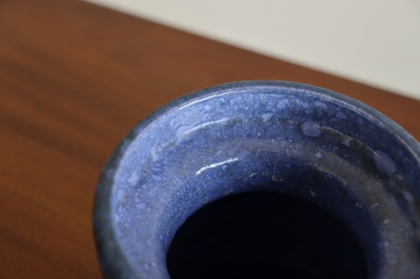 表面はサラサラとしたマットな質感。垂れた釉薬のエンボスや滲み具合が感じられます。ブラックのベースにブルー、パープル、ホワイトが美しいグラデーションで表現されています。