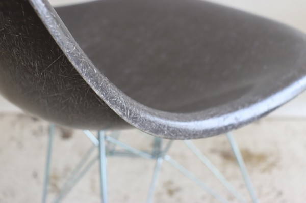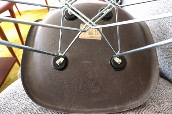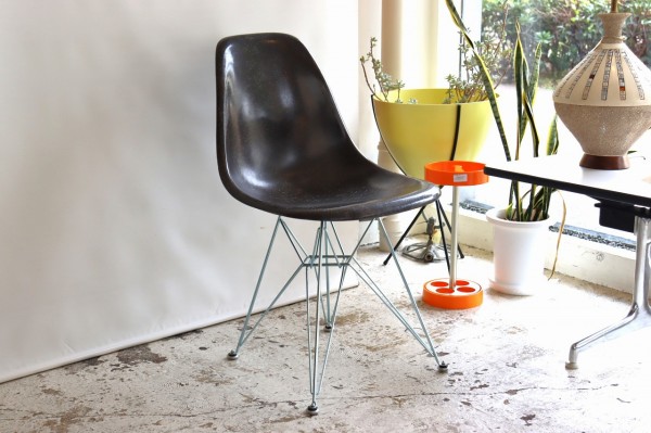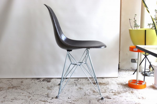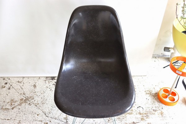 ハーマンミラー社製サイドシェルチェア。チャールズ・イームズデザインのビンテージチェア。FRP(ファイバーグラス)製のダークトーン、ナローマウント。