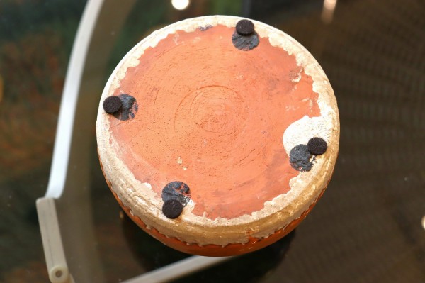落ち着いたトーンのオレンジは艶やかな質感で華やかさが感じられますね。土や粘土感のあるベースとの塗分けも見事で質感と色合いの美しいコントラストです。