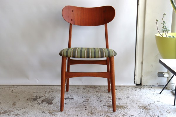 デンマーク製ダイニングチェア。背もたれのデザインが丸く可愛らしいチークのダイニングチェアです。