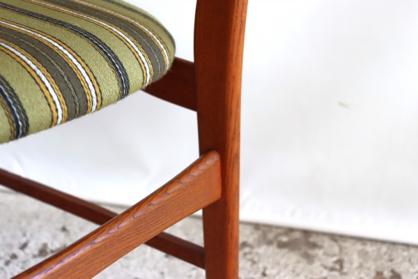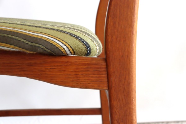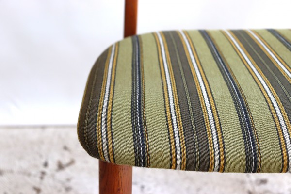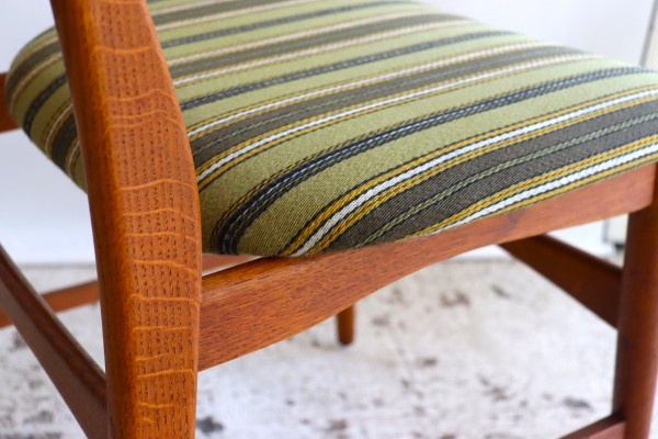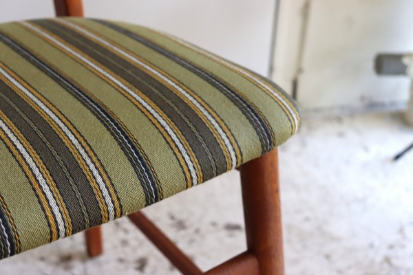 北欧ビンテージらしい張地は優しい緑地に青や黄色、白のラインが入り、あたたかい生活感のある印象のチェアです。ビンテージならではの深みも感じられますね。