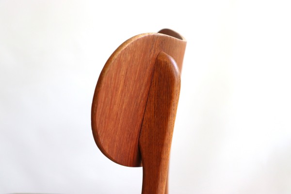チーク材の角の丸みが有機的で北欧家具ならではのモダンな造形が魅力です。背もたれ部分は面積があるのでチーク材の風合いや木目も感じられます。