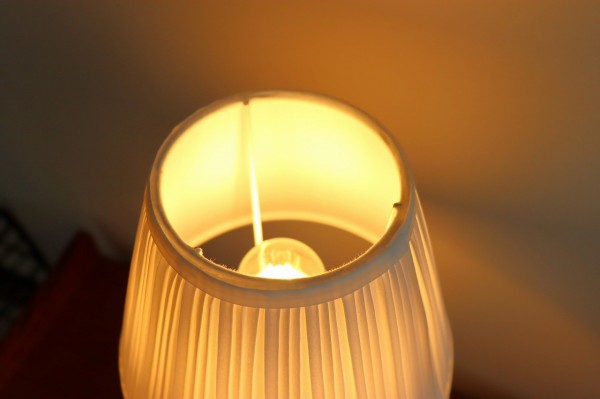 シェードランプは上下に漏れる光の筋も楽しみのひとつ。壁面を照らして広がりを演出したり、サイドテーブルやナイトスタンドの上に置いて手元を照らしたりと楽しむことができます。