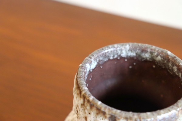 取っ手付きで、ぷっくりと丸み帯びたフォルムはとても可愛らしいですね。落ち着いて色味でどのような花ともよく合いそうです。