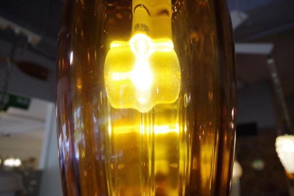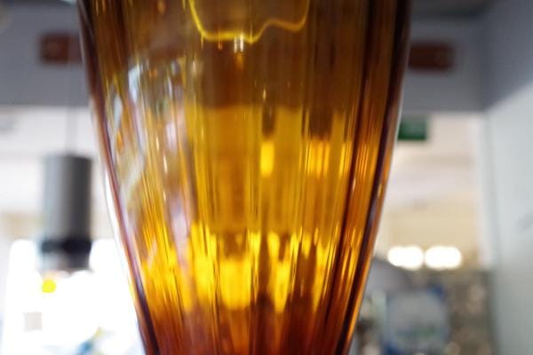 琥珀色のガラスはすぼんだ下側が濃く溜まった感じも綺麗です。