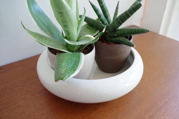 ポタリーボウル。ツヤのある真っ白なボウル型のプランターカバーです。