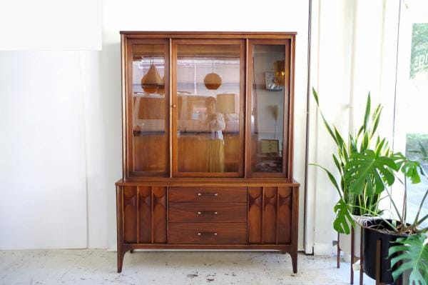 ケントコフィー社製カップボード。プライウッド(曲げ木)で表現された、蝶ネクタイのような取っ手のデザインが特徴的なperspectaシリーズ飾り棚。