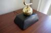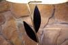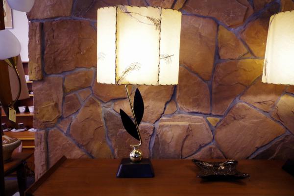 葉のような飾り木と、Z型の真鍮金属支柱、球型の台座飾りがバランスよく配置されています。シャープさと妖艶さの両方が感じられるデザインが絶妙ですね。