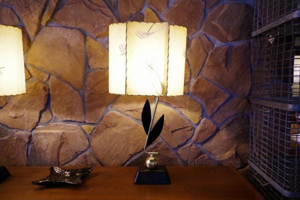 金の支柱やウッドパーツ、スプートニク球にファイバーグラスシェードなど、マジェスティックな要素がぎっしり詰まっています。